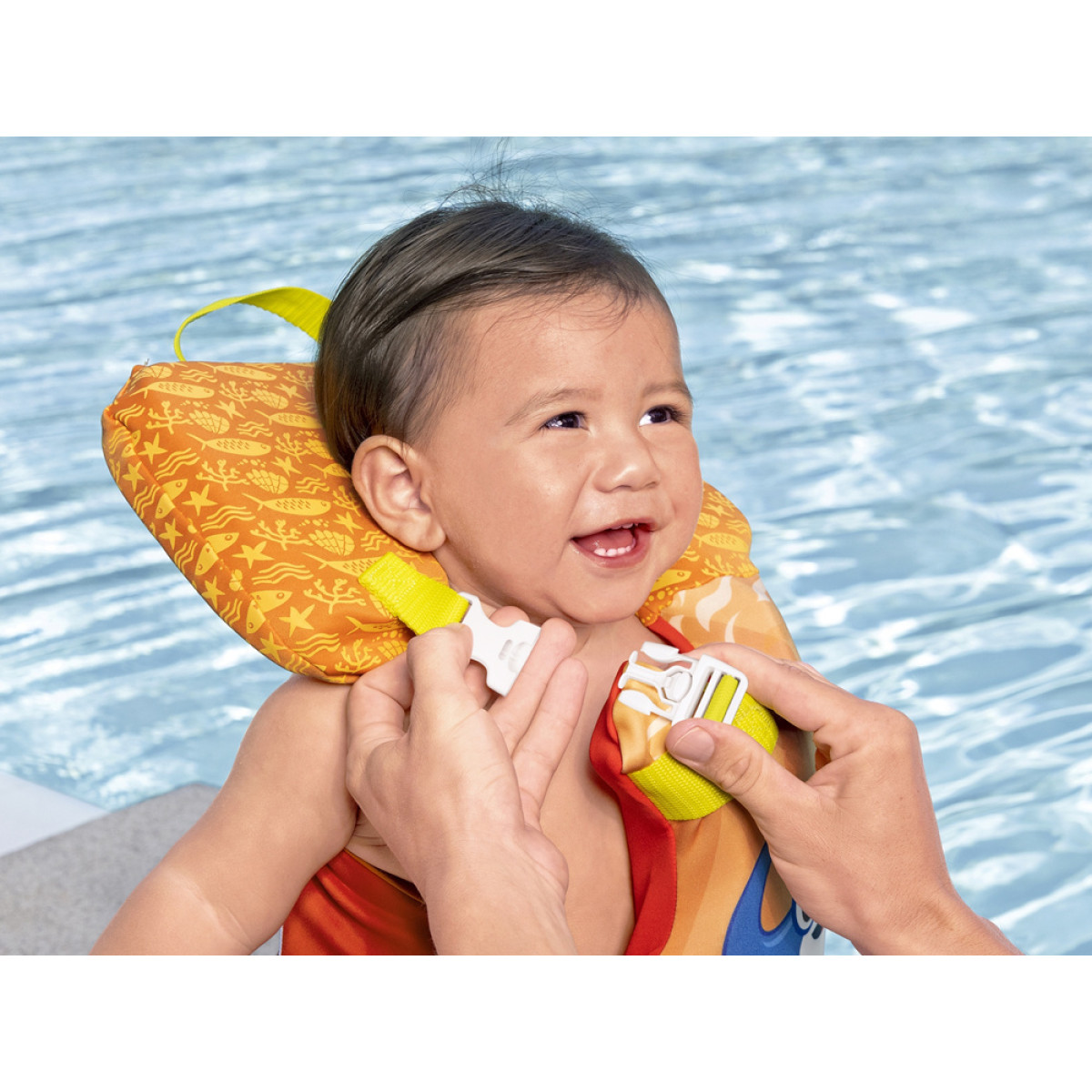 Bestway beebi ujumisvest on usaldusväärne kaaslane teie väikesele suvevee seiklustel. Spetsiaalselt lastele, kes kaaluvad kuni 14 kg, loodud värvikas vest armsa hai graafikaga võimaldab teie lapsel vees turvaliselt aega veeta koos vanemaga.