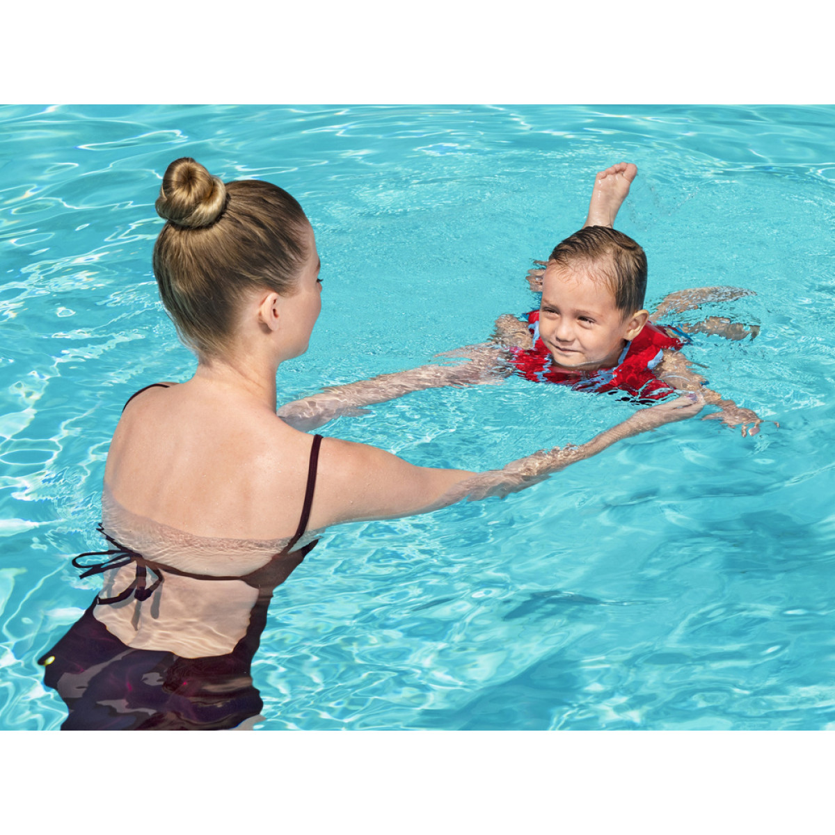 Erksad värvid ja huvitav graafika meeldivad kindlasti igale veemängude fännile. Vest on mõeldud kasutamiseks ainult vees, sügavusel, kus laps tunneb põhja, vanema järelevalve all.