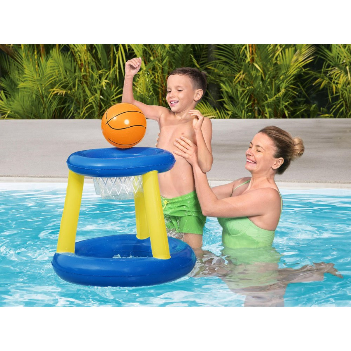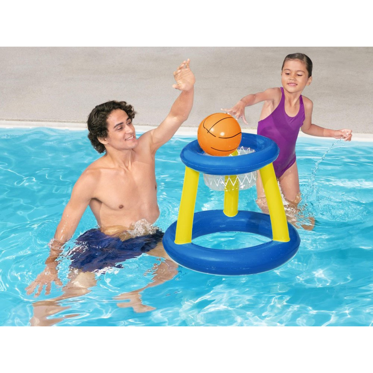 Sinine-kollane täispuhutav korvpallikomplekt on Bestway firma pakkumine aktiivseks ajaveetmiseks basseinis. See meeldib kindlasti lastele, kes armastavad liikuda. Veemäng kuumadel suvepäevadel on suurepärane tegevus, mis pakub palju rõõmu. Piisab, kui kõik elemendid täis puhuda ja mäng võib alata! Vees hõljuv korv muudab tabamise keerulisemaks, tehes mängu veelgi põnevamaks ja aidates lastel liigset energiat positiivselt kulutada.