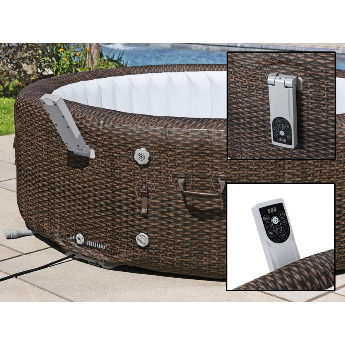 - Sisseehitatud pump, mis säästab spaa ümber vaba ruumi