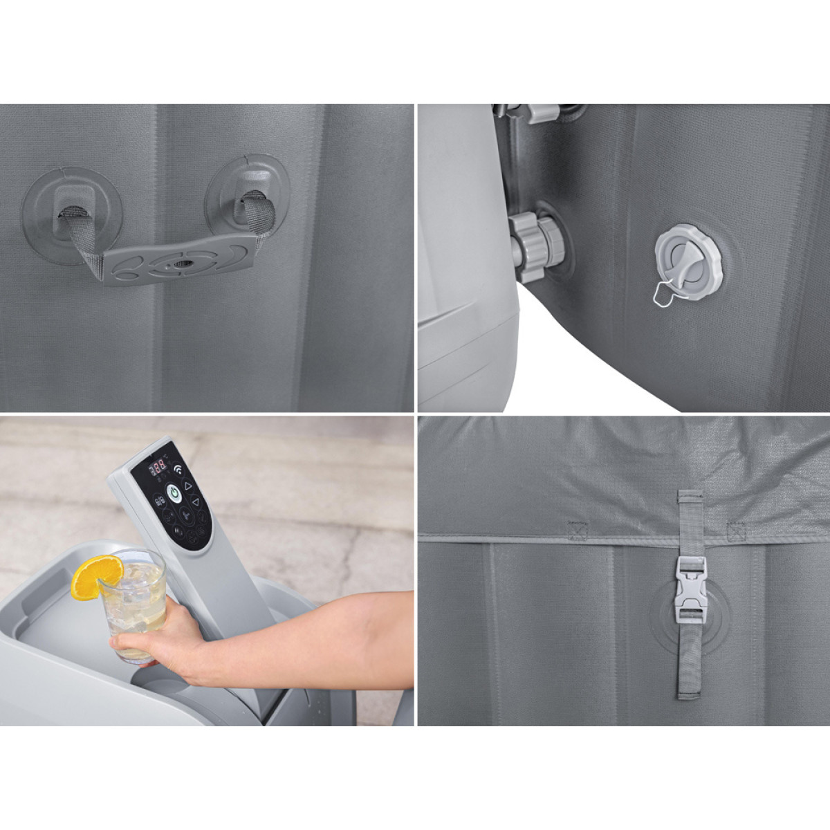 Spaa täispuhutav vann on valmistatud tugevast, kolmekihilisest Tritech™ materjalist. See materjal on paremini vastupidav torkele ja kahjustustele võrreldes tavalise PVC-ga. Sisemised talad koos MaxHold™ kangaga tagavad suurepärase õhu rõhu säilimise, stabiilsuse ja kerguse. Materjal tagab erakordse venimiskindluse, tänu millele säilitab spaa oma algse kuju aastateks, hoolimata sellest, mitu korda seda täis pumbatakse ja tühjendatakse.