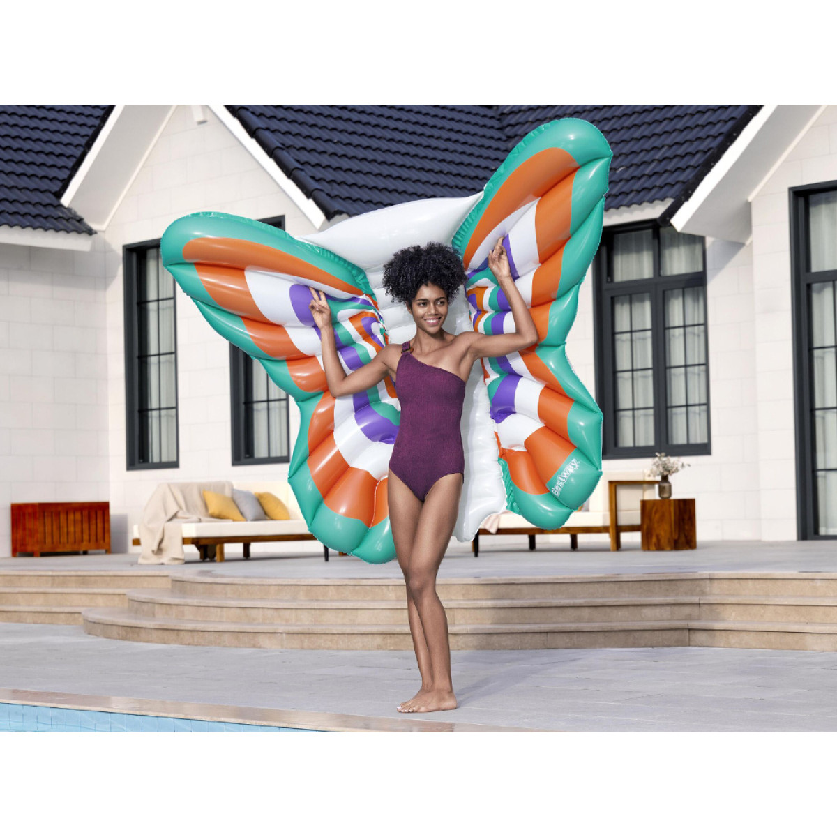 Efektne liblikakujuline veemadrats on ideaalne valik neile, kes soovivad ühendada mugava puhkuse originaalse disainiga. Suur pindala ja stabiilne konstruktsioon tagavad mugava vee peal hõljumise, ning atraktiivne vorm tõmbab pilku ja eristub basseinides, järvedel või mere ääres.