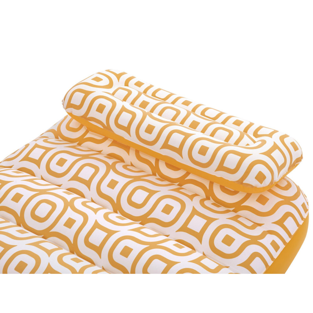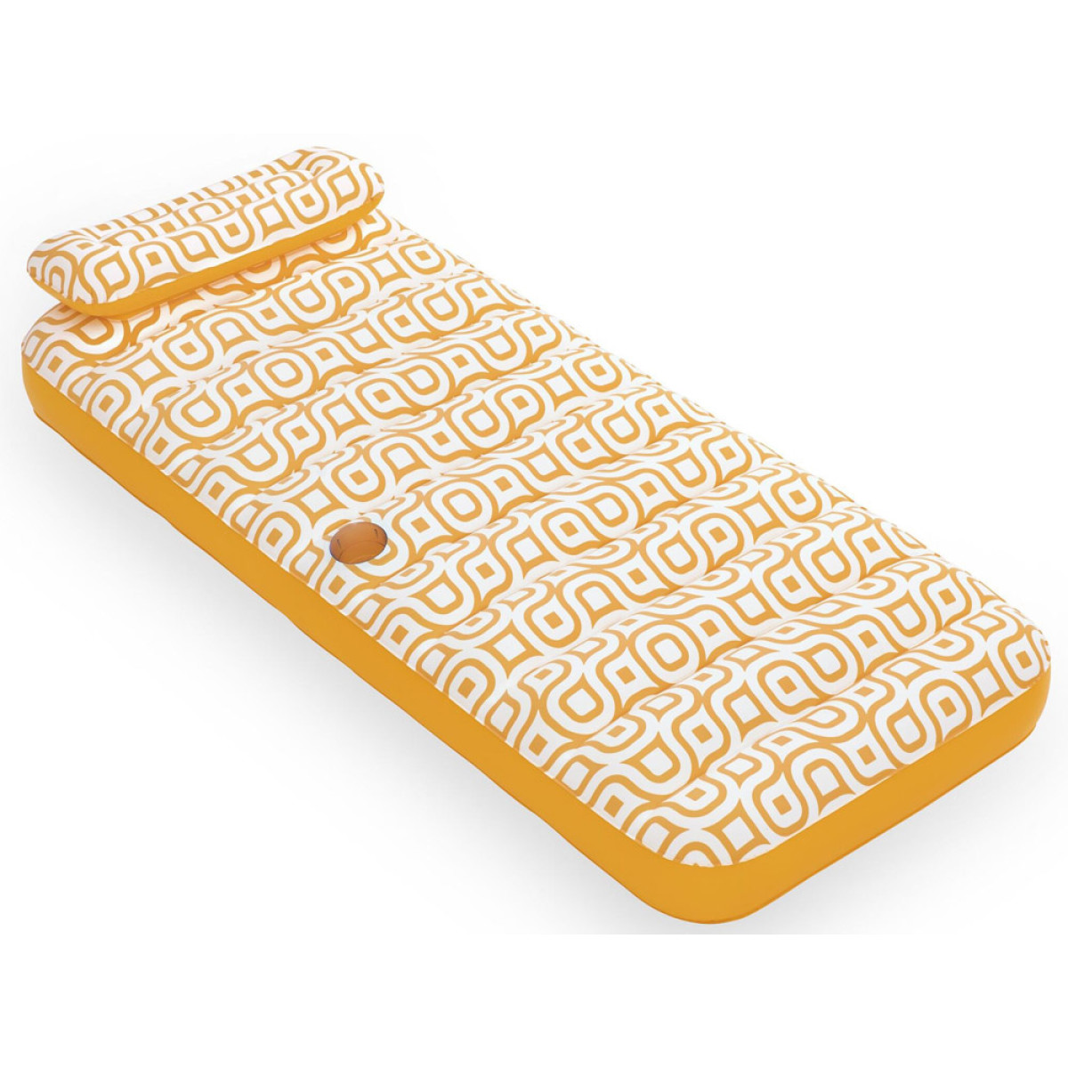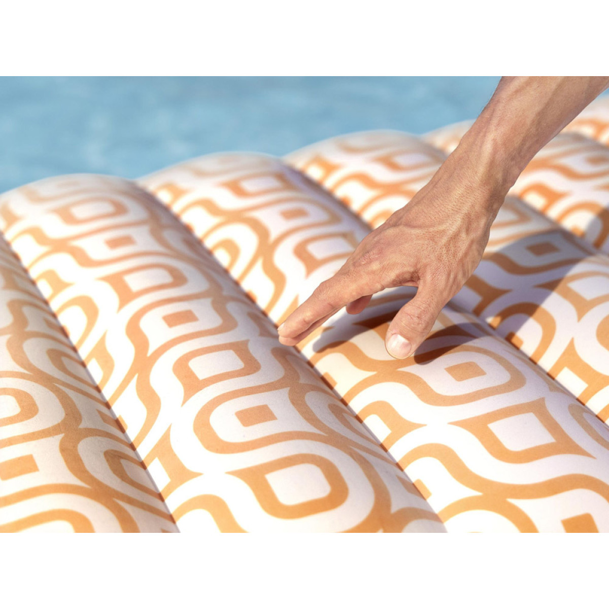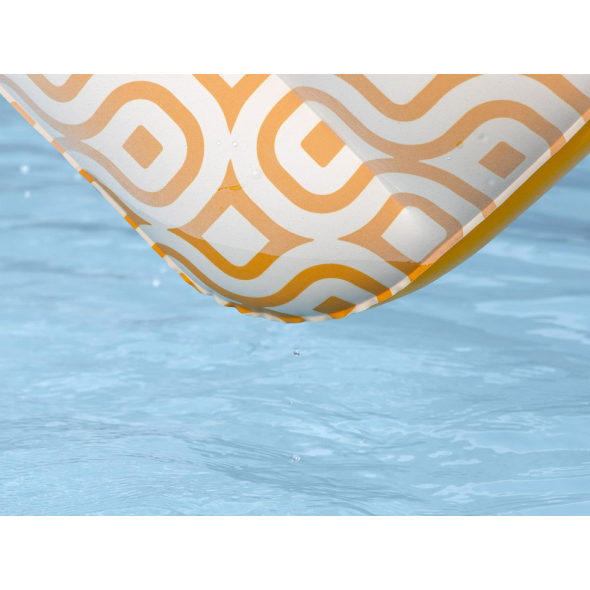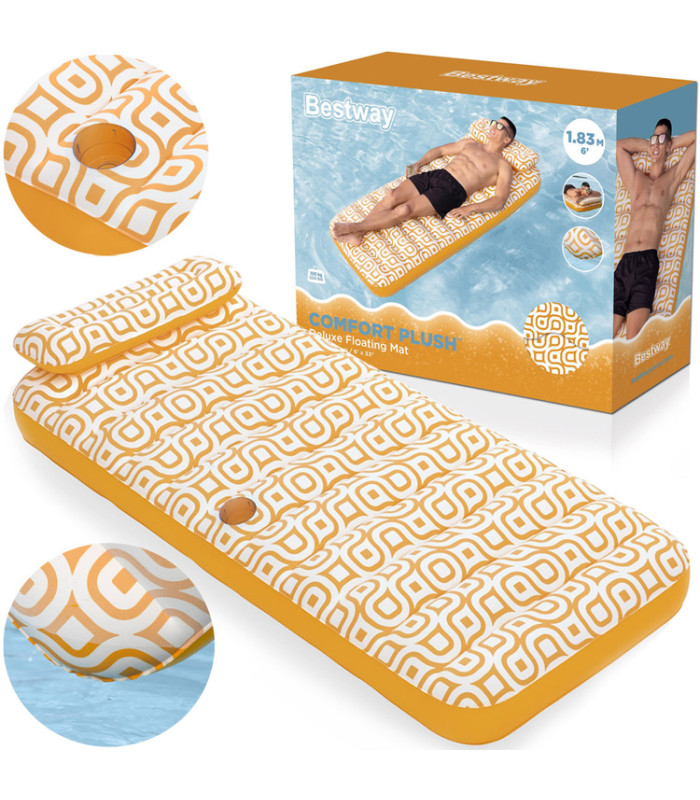 Veekindel Comfort Plush pind meenutab sametit ja on pehme puudutusega ning ei kuumene liigselt päikese käes. Lisaks muutub materjali värv veega kokkupuutel heledamaks ja intensiivsemaks, andes madratsile ainulaadse ja efektse välimuse. Sisseehitatud padi tagab pea ja kaela toetuse, suurendades mugavust pika veepuhkuse ajal.