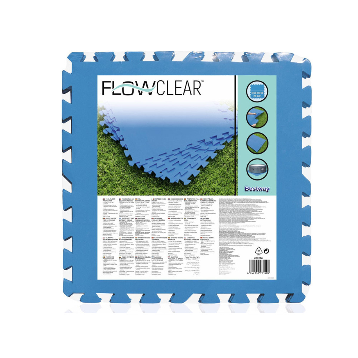 Bestway vahtmatt basseini alla on valmistatud vastupidavast polüetüleenmaterjalist. See kaitseb ja isoleerib basseini all olevat pinda ning selle ümbrust. Komplekt sisaldab 9 eraldi ruudukujulist kaitsekihti, mis võimaldavad katta 2,25 m² pindala.