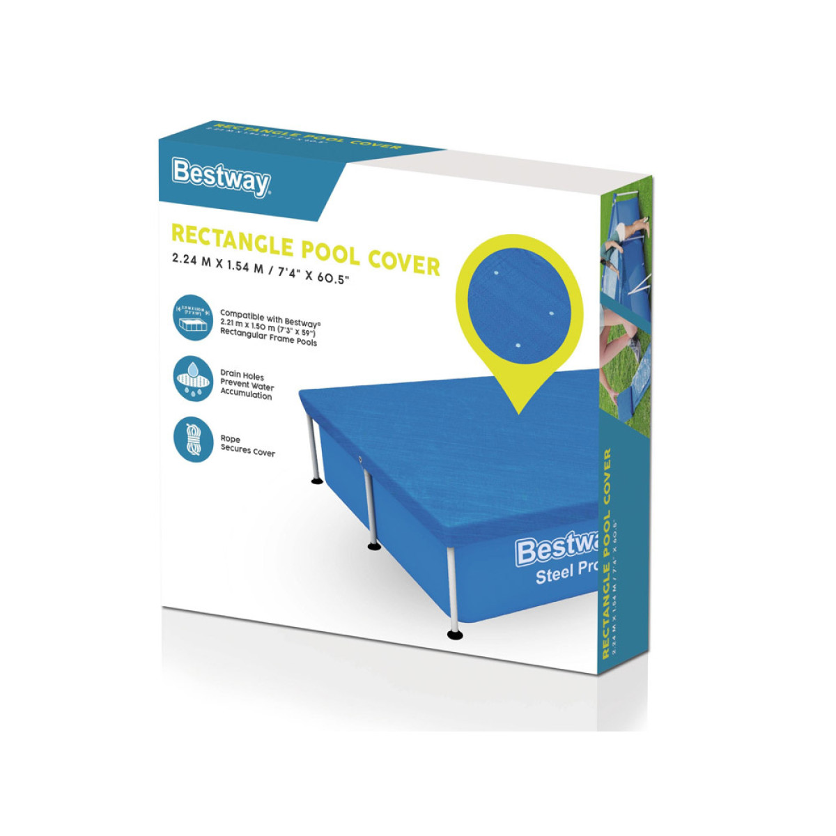 Bestway basseinikate mõõtudega 224 cm x 154 cm sobib täispuhutavale basseini mõõtudega 221 cm x 150 cm.