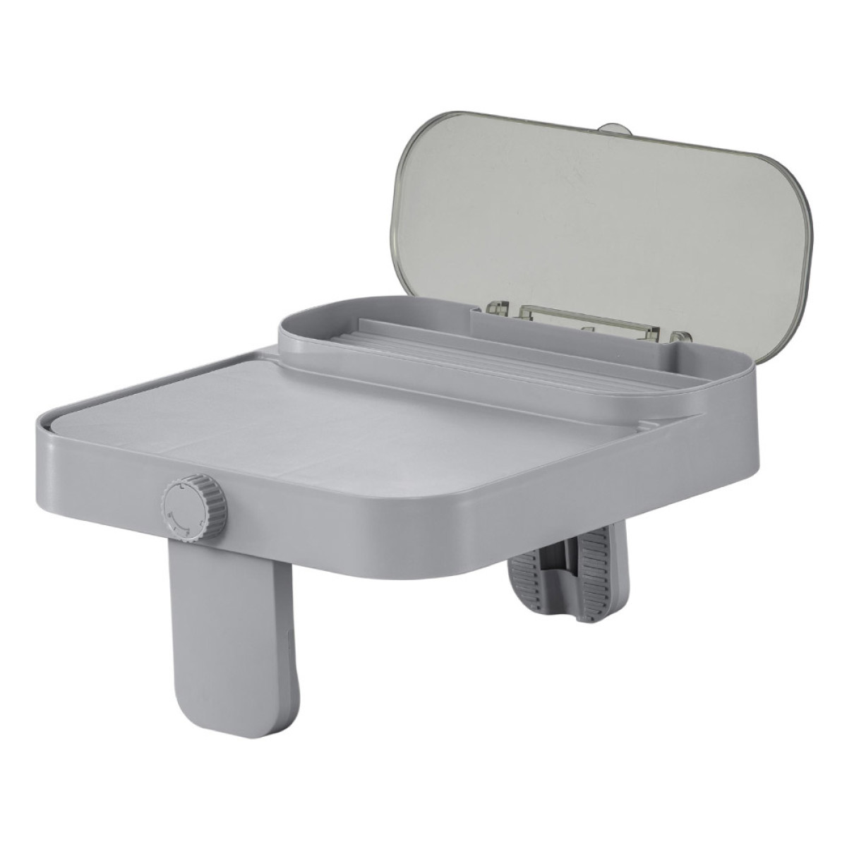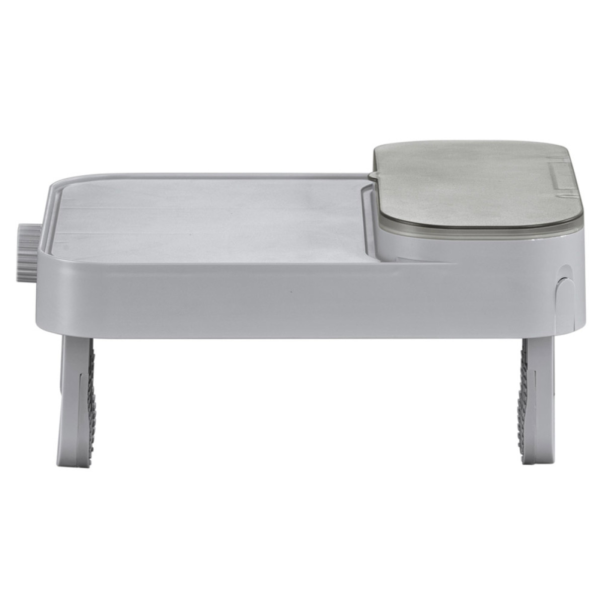 - Multifunktsionaalne disain: kandik toimib lauana, veekindla hoiukohana, käterätihoidjana ja tahvelarvuti alusena.