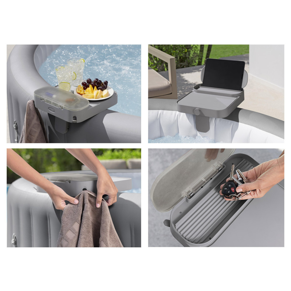 Tänu Bestway 4in1 riiulile saad nautida Lay-Z-Spa lõõgastust, hoides kõike vajalikku käepärast. Ideaalne lahendus mugavuse ja funktsionaalsete lahenduste austajatele!