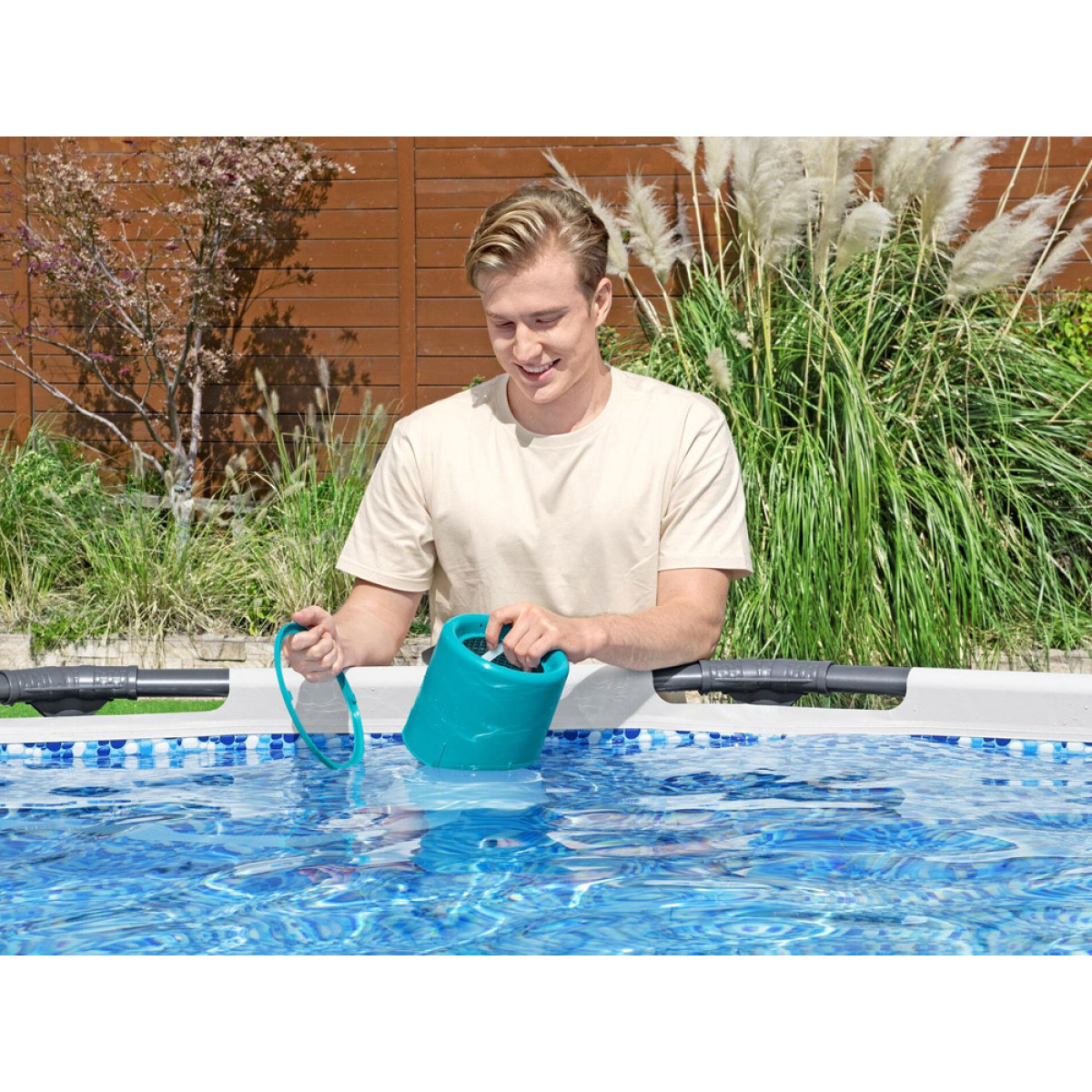 Bestway veeskimmer puhastaja on lihtne kasutada. Kinnitage see lihtsalt basseini siseseinale, imemisava lähedale, ja ühendage see filtratsioonipumbaga, mille vooluhulk on 2006 L/h või suurem. Skimmer puhastab tõhusalt basseini vee kogunenud saasteainetest, nagu lehed ja putukad.