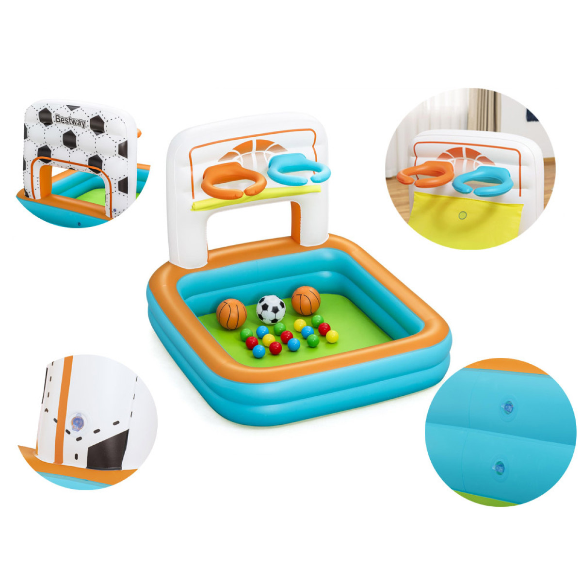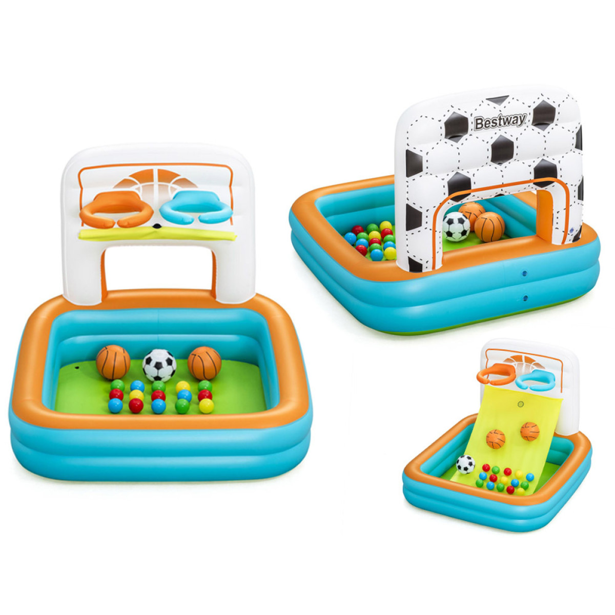 Bestway Kuiv bassein pallidega 3in1 Korvpall + jalgpall 120x107cm 52728