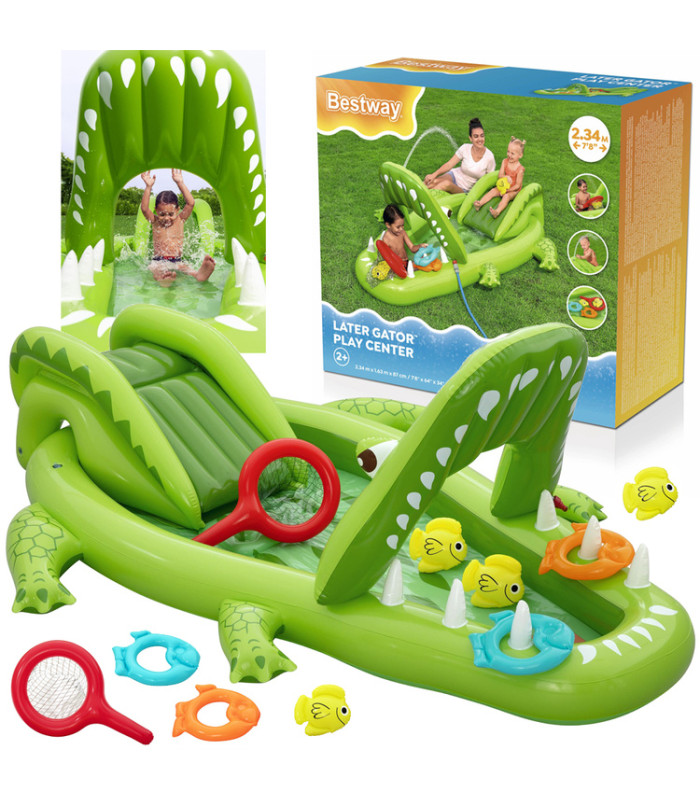 Later Gator™ mängukeskus on lõbus ja värvikas täispuhutav veemängude ala, mis on loodud lastele alates 2. eluaastast. See ühendab endas veemänge, interaktiivseid mänge ja liikumistegevusi, pakkudes tundideks loovat meelelahutust vabas õhus. Aligatori kuju ja erksad värvid köidavad laste tähelepanu ning mänguväljaku erinevad funktsioonid toetavad motoorika, koordinatsiooni ja käeliste oskuste arengut.