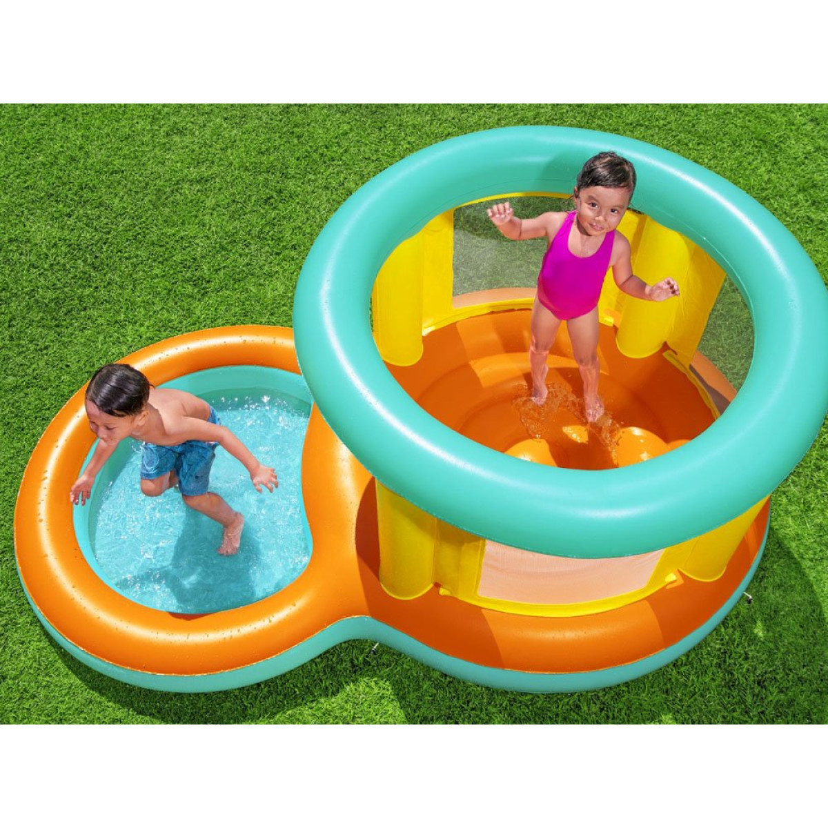 Bestway uusim pakkumine lastele. Komplekt sisaldab ühendatud batuuti ja basseini, kus laps saab pärast aktiivset hüppamist suvel jahedas vees sulistada. Pehmed täispuhutavad käsipuud ja kõrged võrguga seinad pakuvad turvalist hüppamist ning vanematele võimalust last jälgida. Mänguväljak sobib ideaalselt aeda, terrassile või isegi koju.