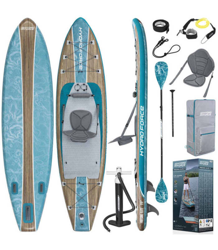Hydro Force® Freesoul Elite 2in1 on täispuhutav komplekt, mis on ideaalne viis veeta aktiivselt vaba aega veekogu ääres. See mitmekülgne, laia kujuga SUP laud pakub stabiilsust erinevates veetingimustes ning selle kandevõime on kuni 150 kg. Sobib kõigile, olenemata kogemustasemest.