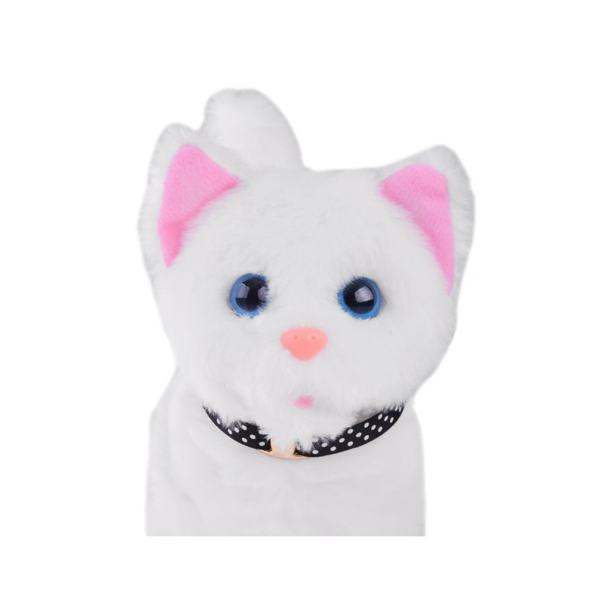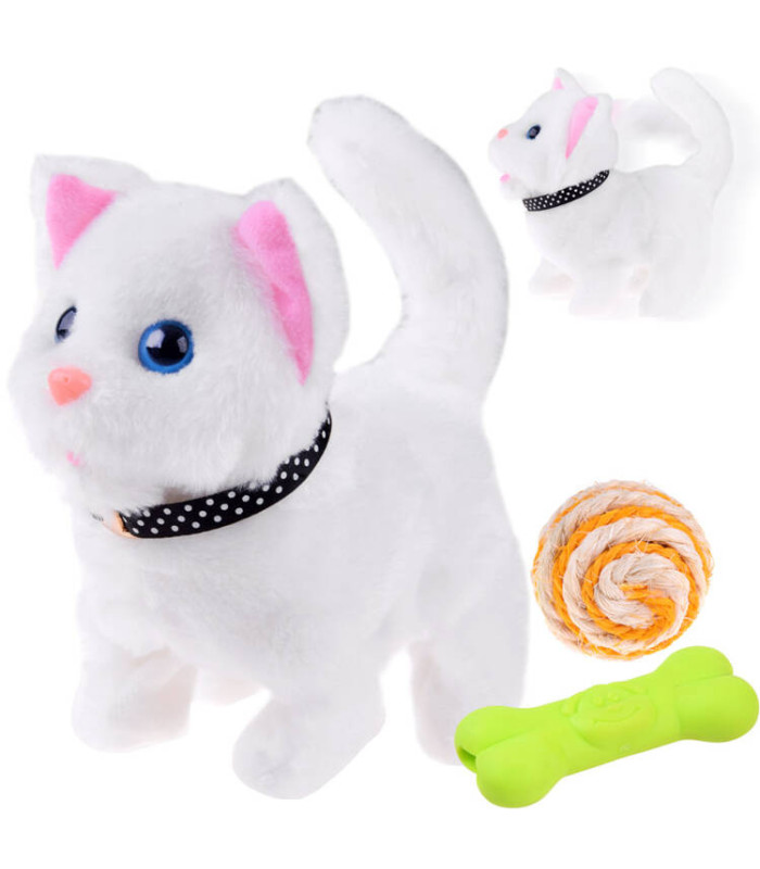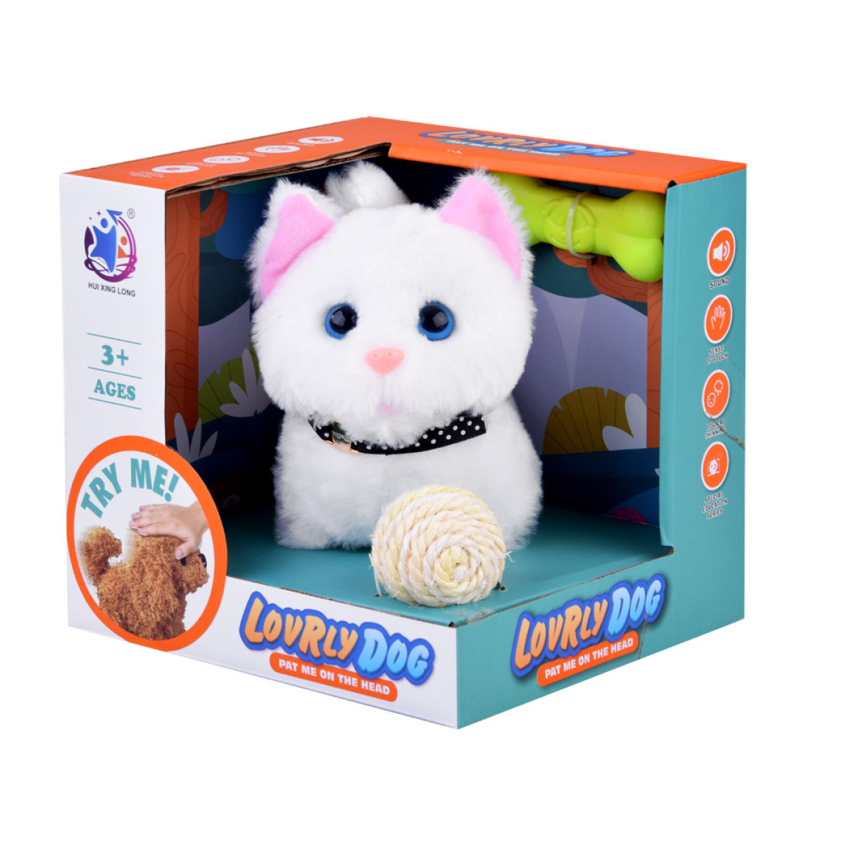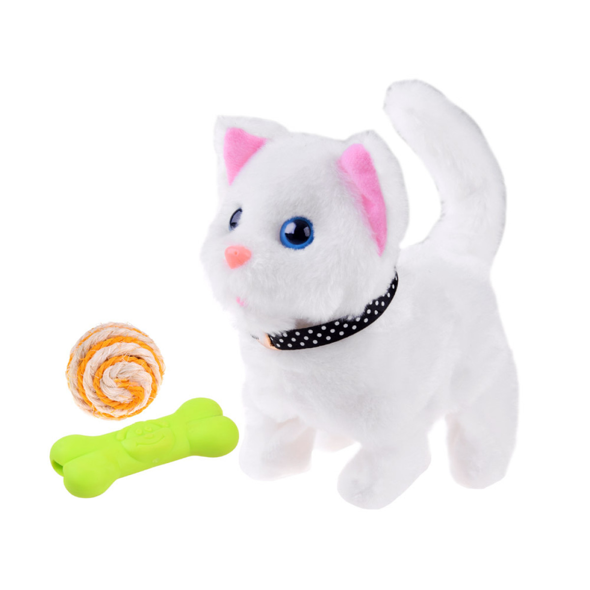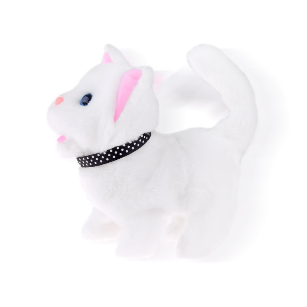 Armas valge interaktiivne kassipoeg, mis rõõmustab iga last ja saab tema parimaks sõbraks. Kassipojal on pehme valge karv, roosa nina, sinised silmad ja must kaelarihm valgete täppidega ning kuldse kaunistusega. Mänguasi töötab patareidega. Pärast patareide paigaldamist hakkab kassipoeg mjäuguma, liikuma edasi ja tagasi ning liigutama pead, suud ja saba. Lisaks on kassipojal mängimiseks pehme kummist roheline kuubik ja värviline nööriga ümbritsetud pall.
