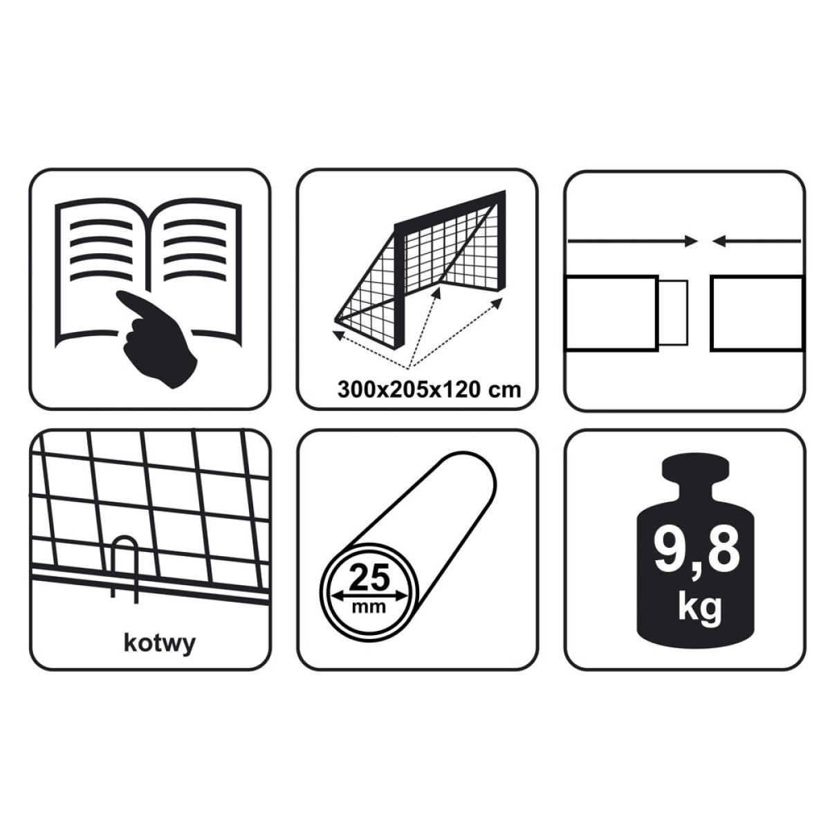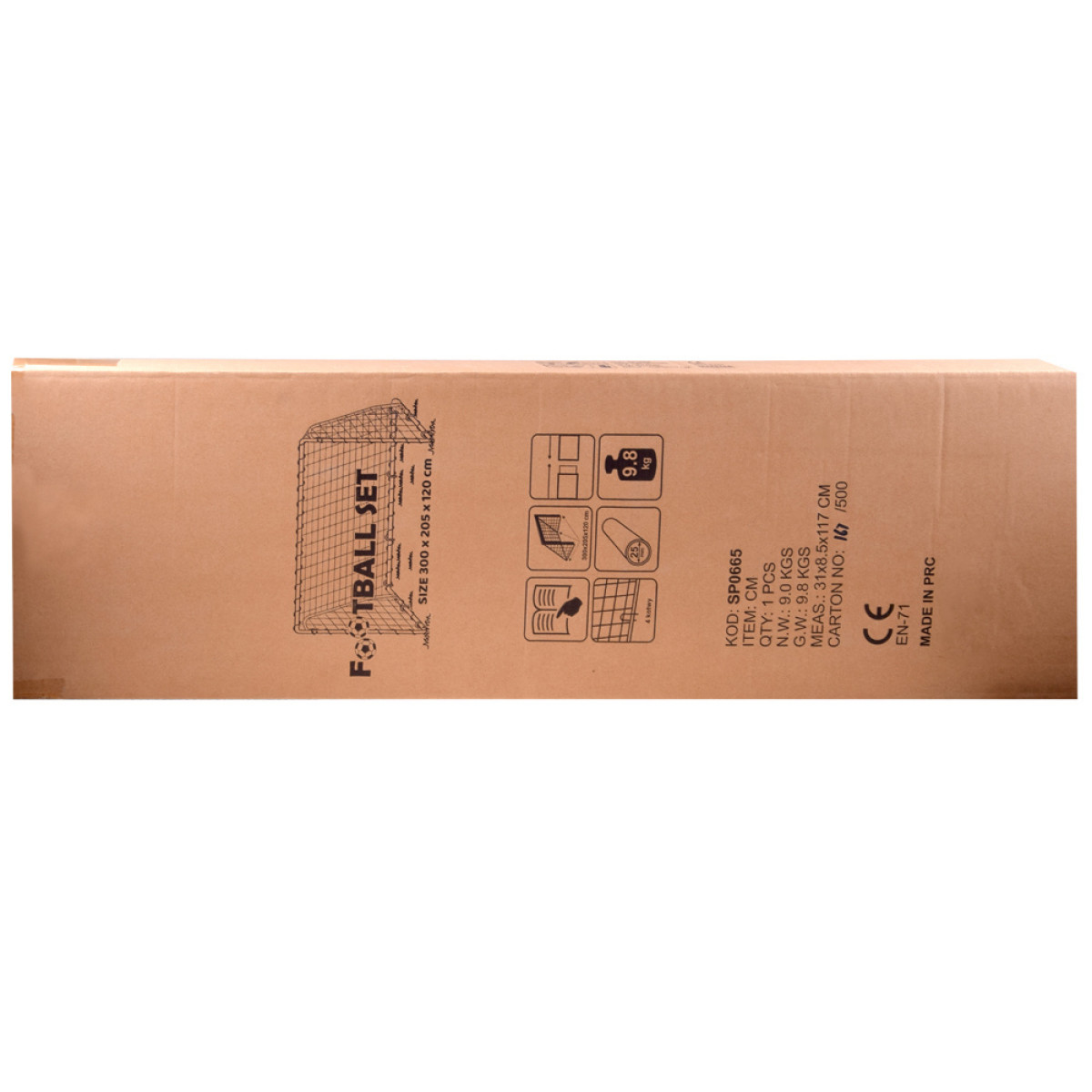 Jalgpallivärav mõõtmetega 300 cm x 205 cm x 120 cm sobib ideaalselt koduaeda mängude korraldamiseks. Väraval on värvitud metallraam, mis kaitseb seda ilmastikutingimuste eest. Võrk on valmistatud vastupidavast polüestrist.