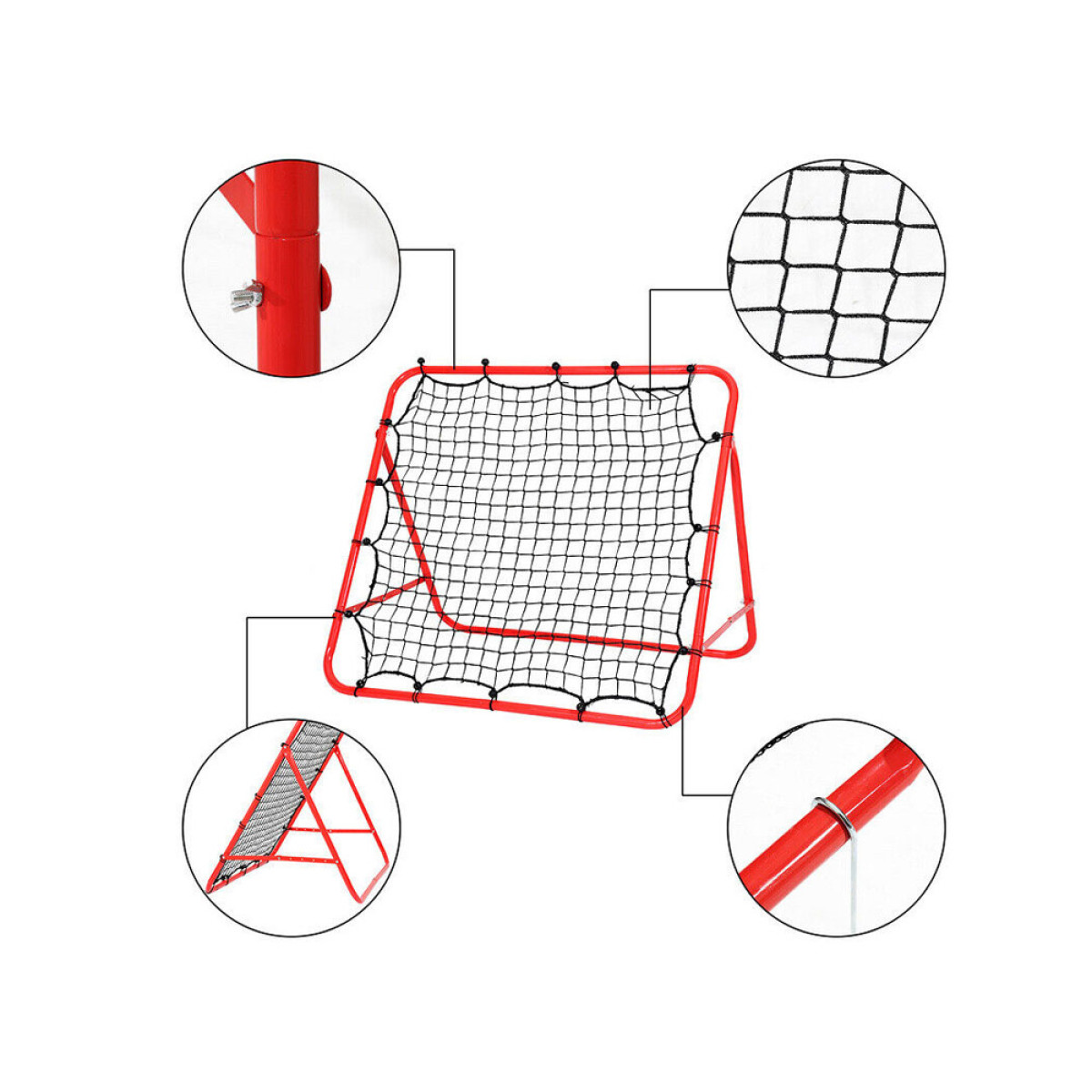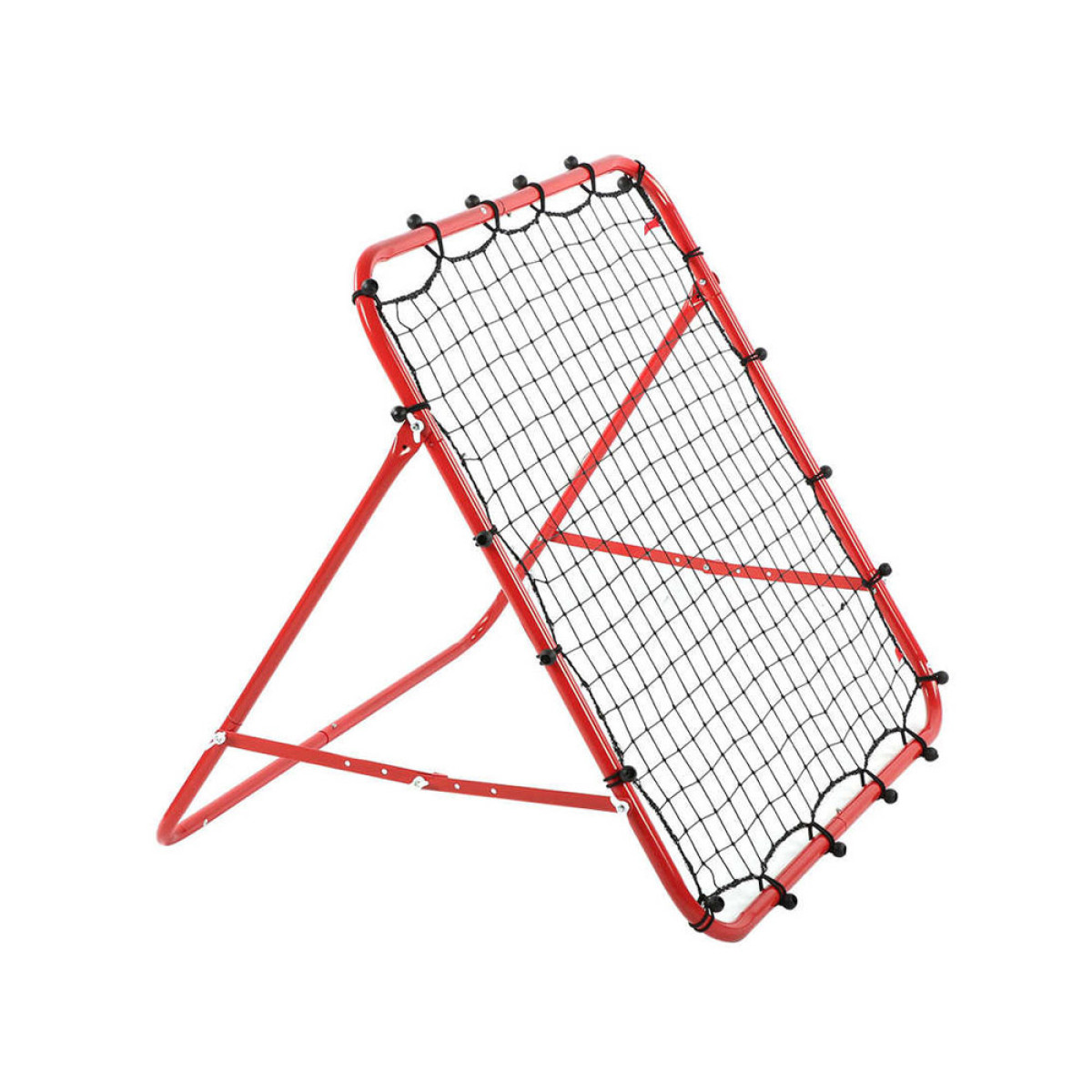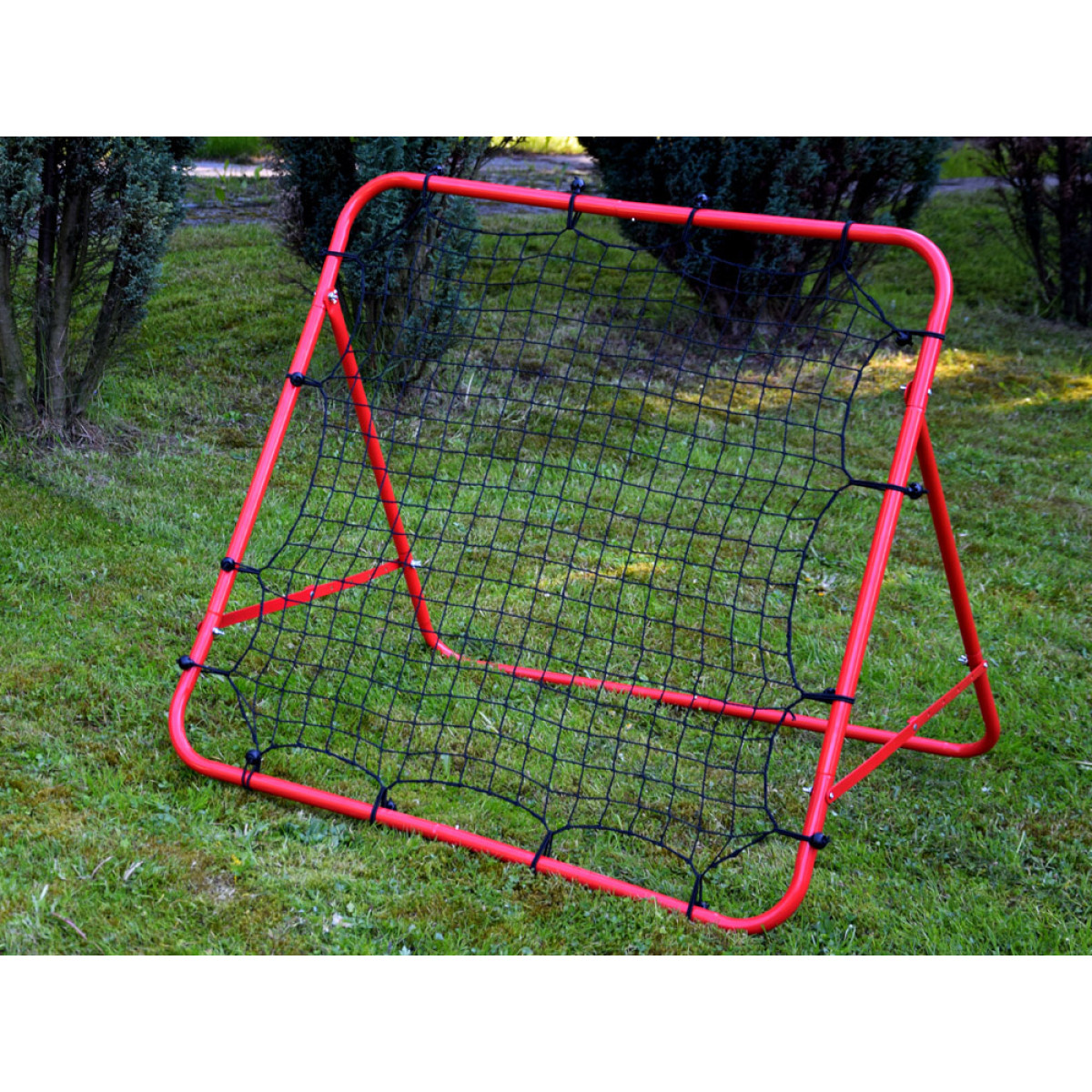 Rebounderi raam on valmistatud terasest ja kaetud vastupidava pulbervärviga sügavas punases toonis. Tugeva koega nailonvõrk talub hästi korduvaid pallilööke. Komplekti kuulub 4 vaia, mis aitavad hoida konstruktsiooni stabiilsena. Raamil on 4-astmeline sügavuse reguleerimine, mis võimaldab muuta ka võrgu kaldenurka. Lisaks on komplektis 20 elastset kinnitust, mis tagavad võrgu õige pinge, et treening oleks tõhus ja mugav.
