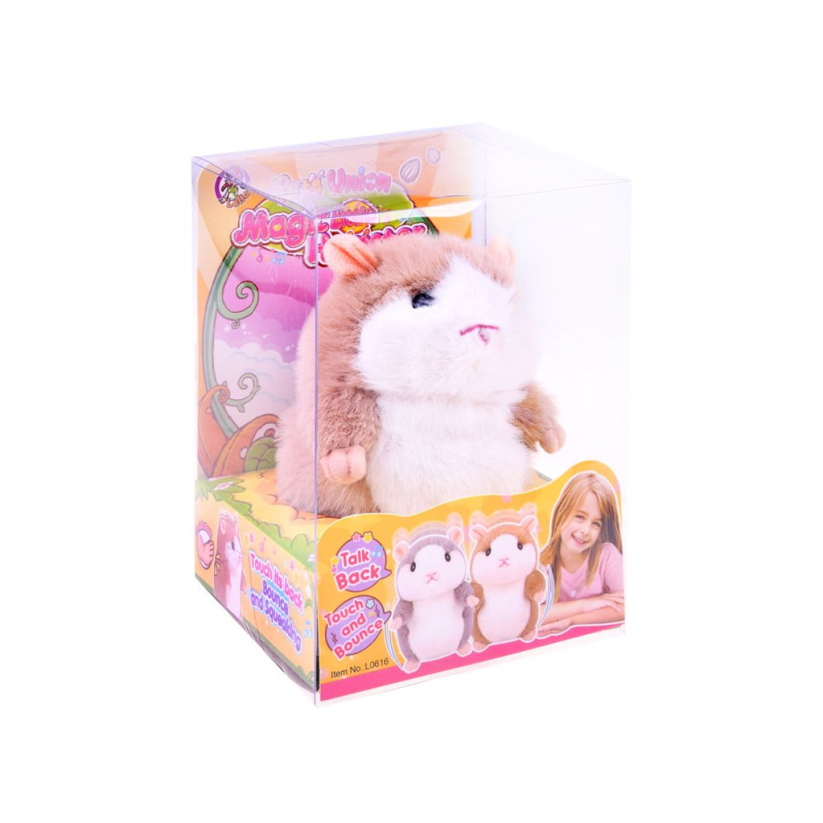 Pehme hamster kuulab sind ja kordab kõik öeldud sõnad, lõbusalt oma keha liigutades. Kui hamster on sisse lülitatud, räägi talle sõnad, mida soovid, et ta kordaks. Hamster on katsudes pehme, liigub lõbusalt ja teeb naljakaid helisid.