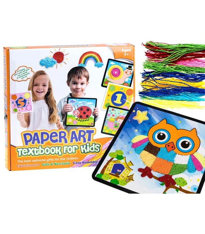Loov komplekt väikestele kunstnikele, koosnedes värvilistest paberist nööridest ja piltidest, mida saab ise kaunistada.