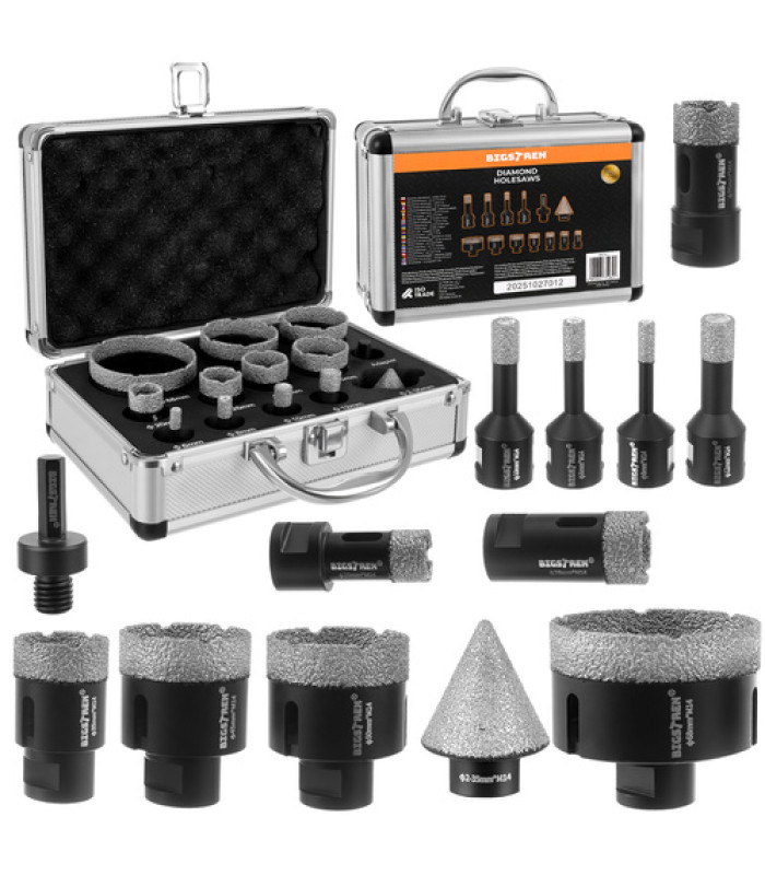 Bigstren teemantpuuride komplekt on ette nähtud täpseks puurimiseks kõvades ja väga kõvades materjalides. Komplekt on ideaalne seal, kus tavalised puurid jäävad hätta. Selle abil saab täpselt puurida aukusid keraamikas, kivi, graniidis, marmoris ja betoonis. Vaakumjoodetud teemandid tagavad puhtad servad ilma mõrade ja pragudeta. Komplekt on kavandatud pikaealiseks, stabiilseks tööks ja korduvateks tulemusteks, sobides nii professionaalidele kui ka kodukasutuseks.