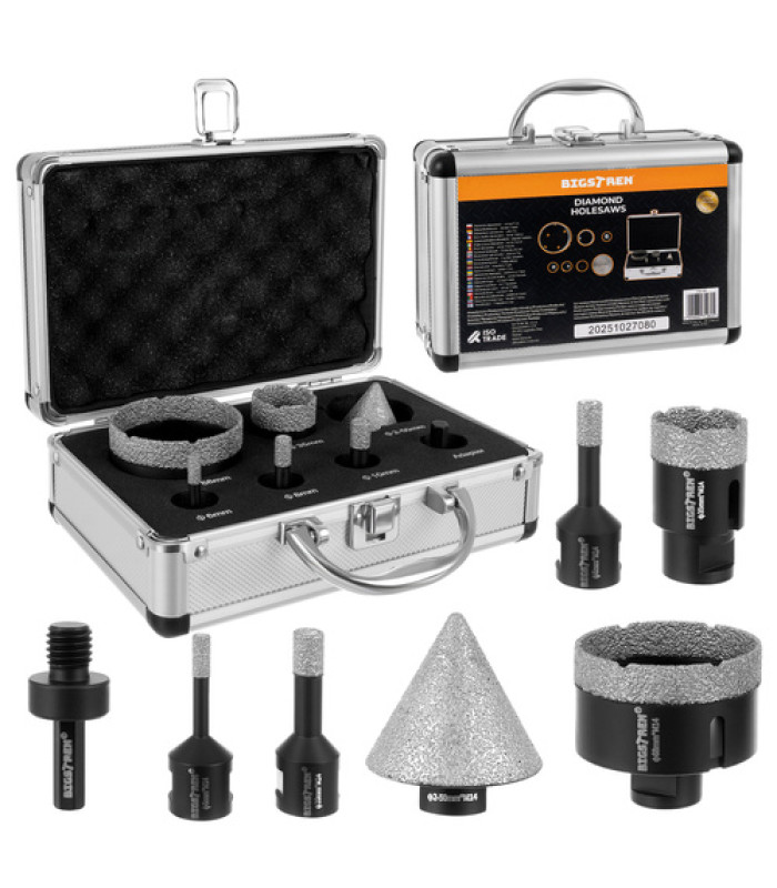 Bigstren teemantpuurid on loodud töötamiseks seal, kus tavalised puurid ei suuda. Need võimaldavad täpset puurimist kõvades materjalides nagu kivi, graniit, marmor ja betoon. Tänu vaakumkeevitatud teemantidele saate puhtaid servi ilma pragudeta. Komplekt on mõeldud pikaajalisteks kasutusteks, stabiilseks tööks ja korduvateks tulemusteks. Ideaalne nii professionaalseks kui ka koduseks kasutamiseks.