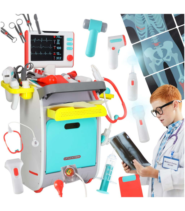 - Tutvustab lastele meditsiiniliste uuringute protsessi - mänguasja meditsiinijaama abil saab laps näha, kuidas tehakse näiteks EKG või röntgenuuringut või tervisekontrolli.