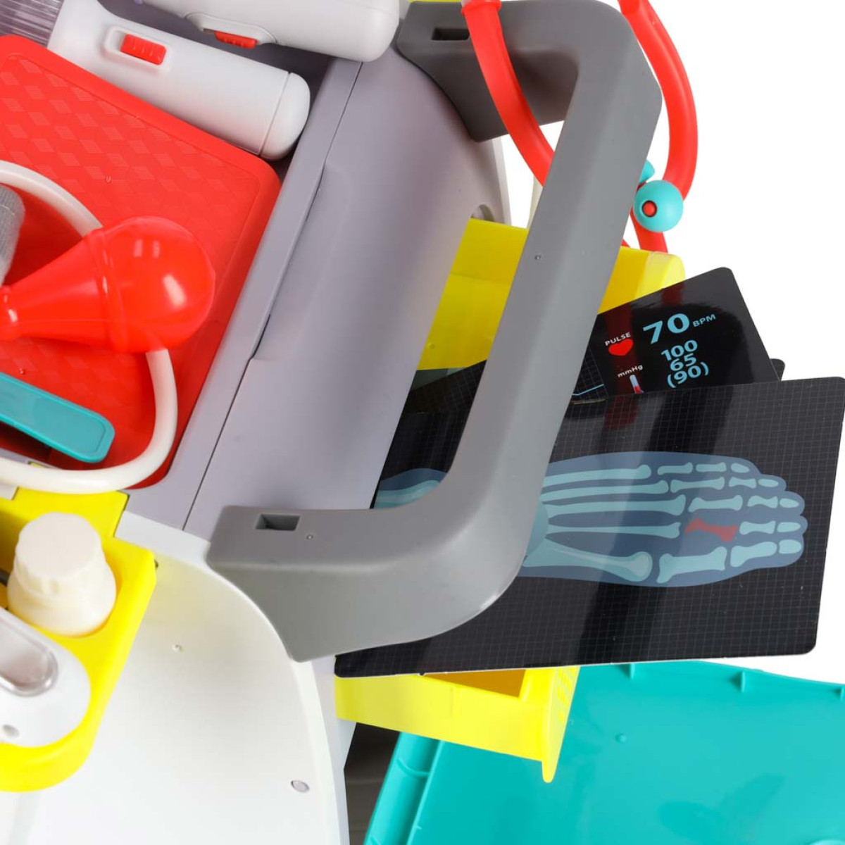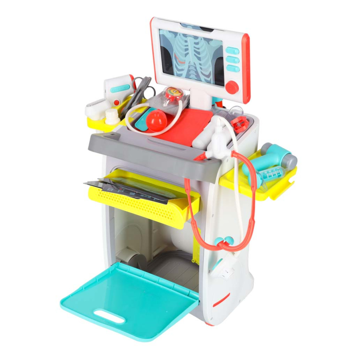 Laps saab läbi viia tervisekontrolli - mõõta pulssi, temperatuuri või vererõhku. Samuti saab mõõta lapse pikkust kokkupandava mõõdulindi abil. Ekraanikujuline raam võimaldab paigutada pilte, mis meenutavad röntgeni või EKG salvestisi. Lisaks töötab meditsiinijaam patareidega - nuppe vajutades saab käivitada erinevaid meloodiaid.