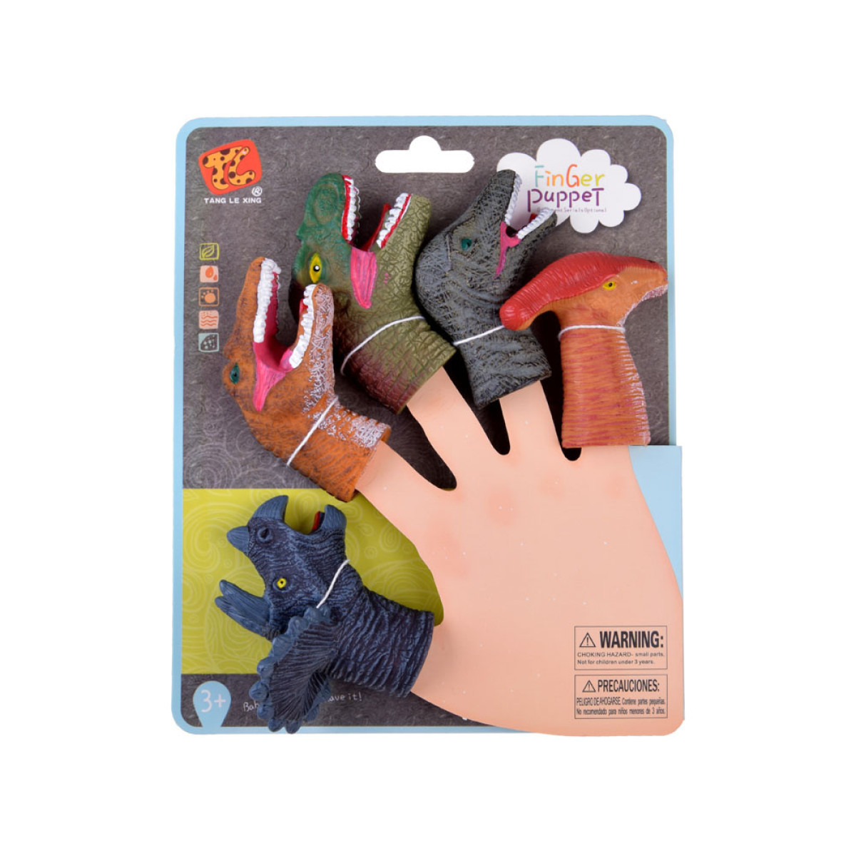 Viie kummist dinosaurus sõrmenukkude komplekt pakub igale lapsele palju loovat mängurõõmu. Dinosaurus pea tuleks asetada sõrmele, et mängida stseene, lugeda lugusid antud liigist ning esitada eelajaloolisi etendusi. Mäng ja õppimine käivad käsikäes!