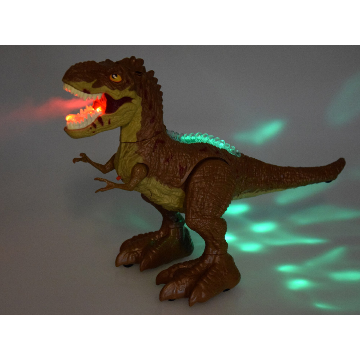 Dinosauruse möirgamine koos suust tuleva auruga, mis valgustuse tõttu meenutab tuld, loob tõeliselt muljetavaldava efekti. Selleks lisage vett looma peas olevasse anumasse ja vajutage kaugjuhtimispuldil sobivat nuppu.