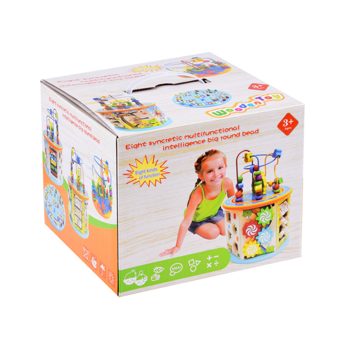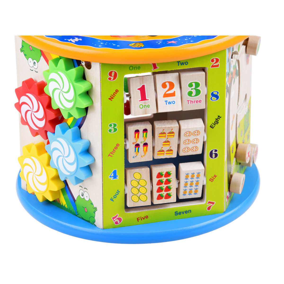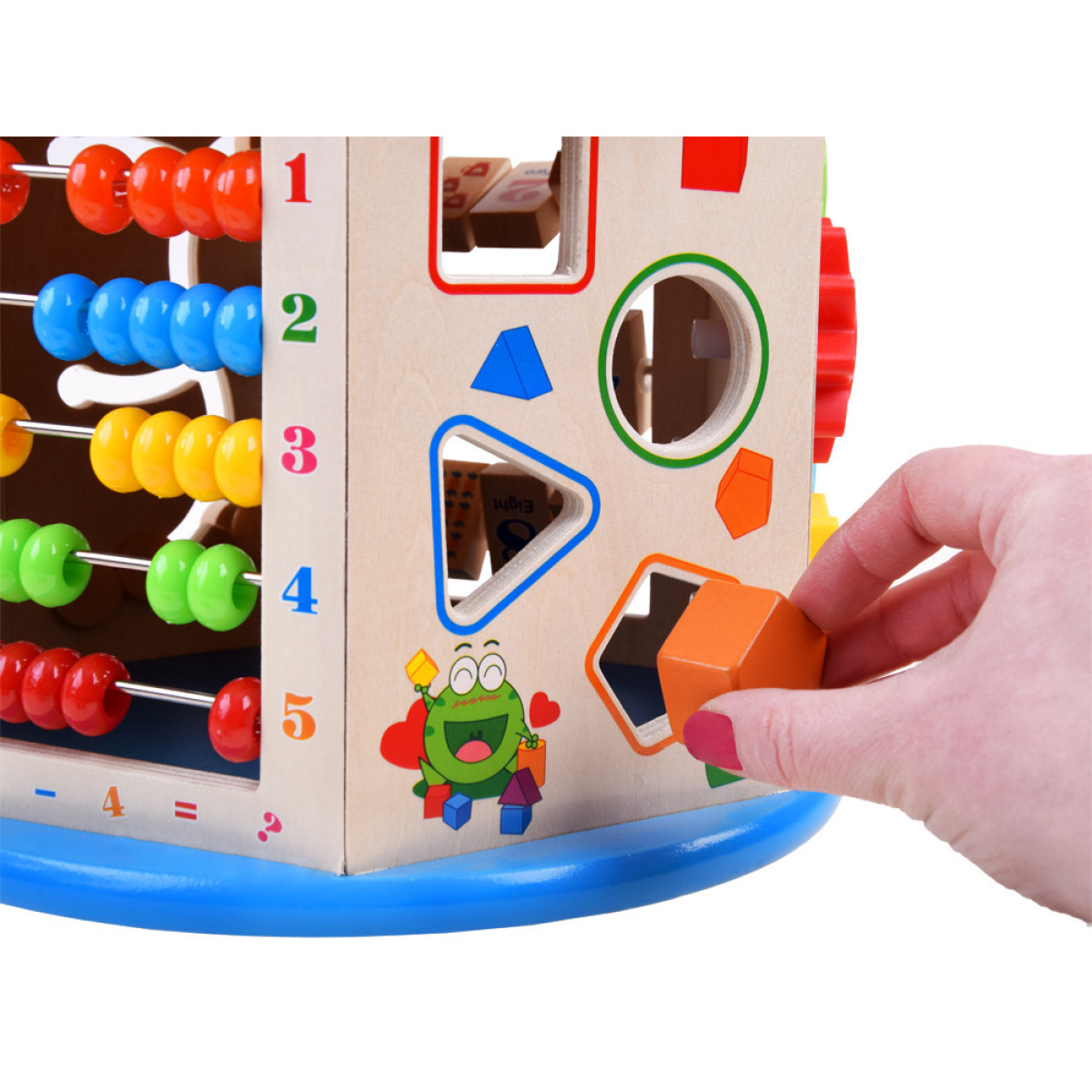 Puidust hariv kuubik 8in1 on mitmeotstarbeline mänguasi lastele.