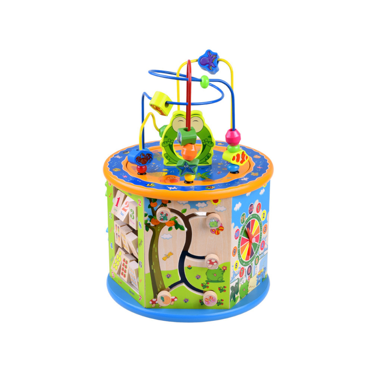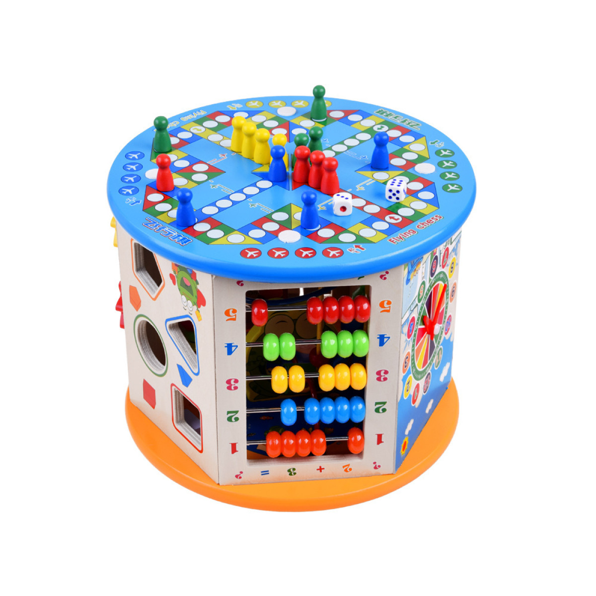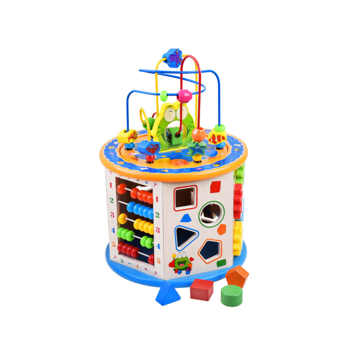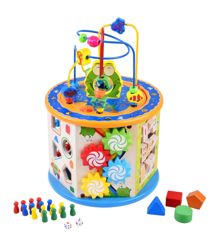 Puidust hariv kuubik 8in1 on mitmeotstarbeline mänguasi lastele.