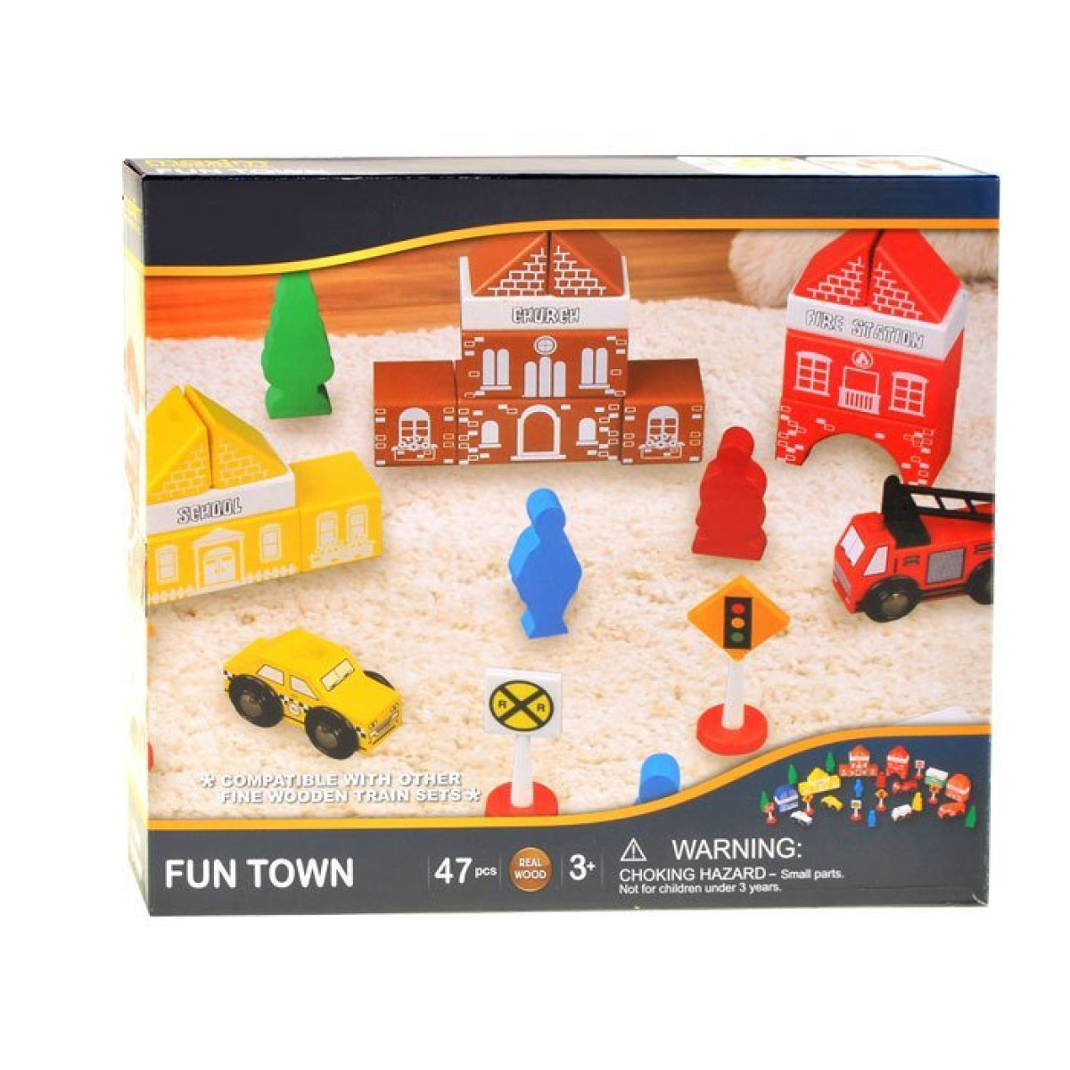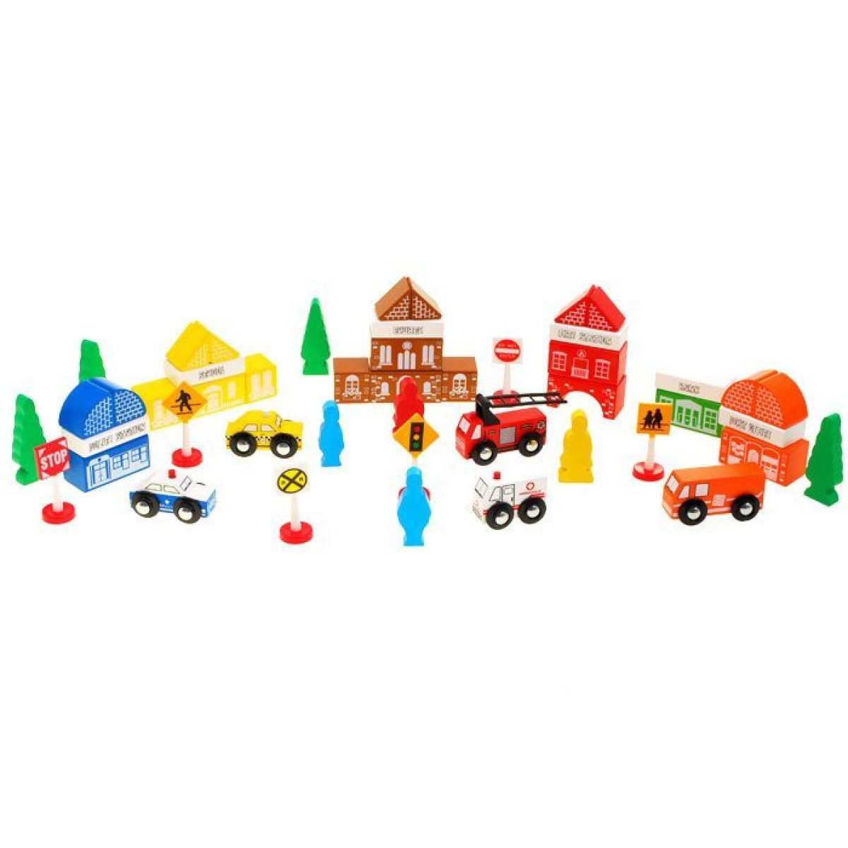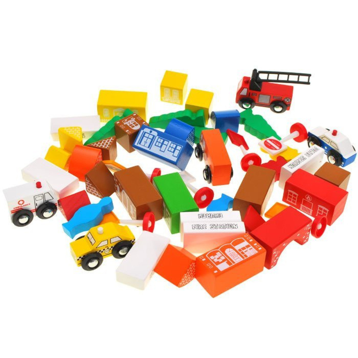 Tutvustame erakordseid puidust klotse. Komplekt sisaldab 47 elementi, millest saab ehitada terve linna: tuletõrjejaama, kooli, panga, kiriku ning ka sõidukid: kiirabi, takso, politseiauto ja isegi puud ning tegelased.