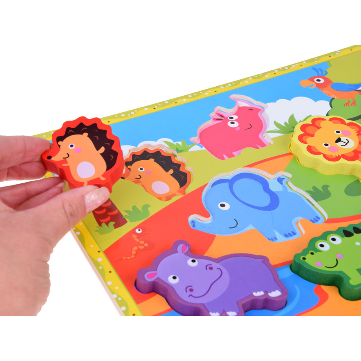 Puidust mosaiikpuzzle on valmistatud kvaliteetsetest materjalidest, ei oma teravaid servi, seega on see lapsele ohutu. Suuri, massiivseid pusletükke on lihtne tõsta ja õigesse avasse panna. Loomadega saab mängida ka eraldi, nagu figuuridega, ning neile põnevaid seiklusi välja mõelda.