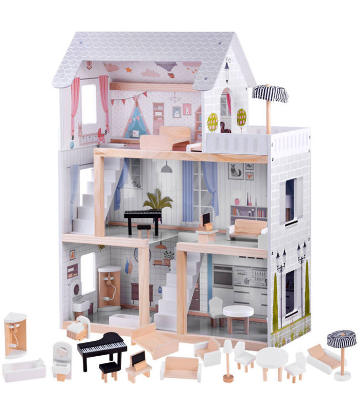 Stiilne, korruseline nukumaja mööbliga tagab iga tüdruku suurepärase mängu. Maja on väga kenasti tehtud, rõõmustab iga last, sobib iga laste tuppa. Majas saavad elada Barbie-tüüpi nukud, Anlily, mida pakume Jokomisiada poes. Majal on kolm korrust, igaüks on sisustatud elegantse ja stiilse viisil. Nukumaja on varustatud kõigi vajalike mööbliesemetega, et tagada mugav elu. Maja viimistlus on väga efektne, mäng sellise majaga kestab lõputult. Mänguasi on isemonteeritav. Maja kokkupanek võtab maksimaalselt 30 minutit, see on väga lihtne ja intuitiivne. Maja on pakitud kasti ja seespool kaitstud polüstüreeniga turvaliseks saatmiseks. Jokomisiada pood pakub laia valikut nukumaju.