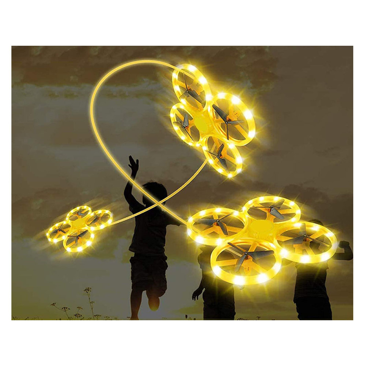 Kui droon on õhku tõusnud, säilitab see 360-kraadise pöörlemise ümber oma telje. Käepaela tuleb panna käele, sisestades selle pöidla vahele ja kinnitades rihma nupuga nimetissõrmele. Silikoonist käepael on 12-astmelise laiuse reguleerimisega, et see sobiks kõigile. Mänguasi on kerge, seega tõuseb see kiiresti õhku. Sellel on 4 vastassuunas tiivikut, mis suurendavad stabiilsust lennu ajal.