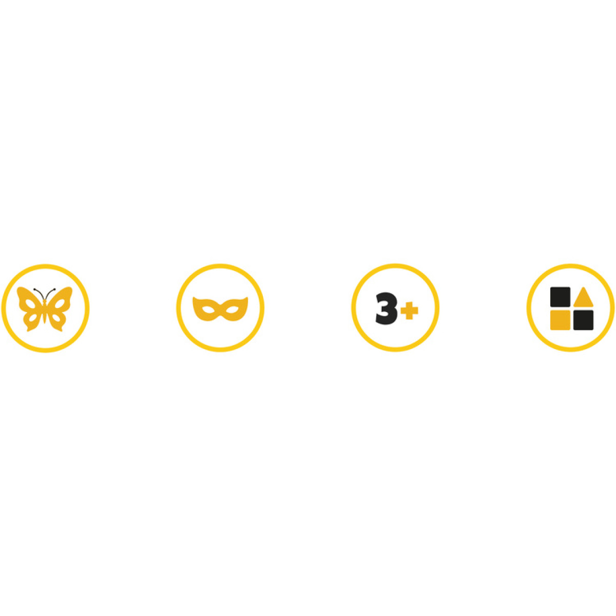 - 6 kostiumo dalys: galvos juosta su antenomis, sparnai, sijonas, papuošalų rinkinys, plaukų kasa ir lazdelė