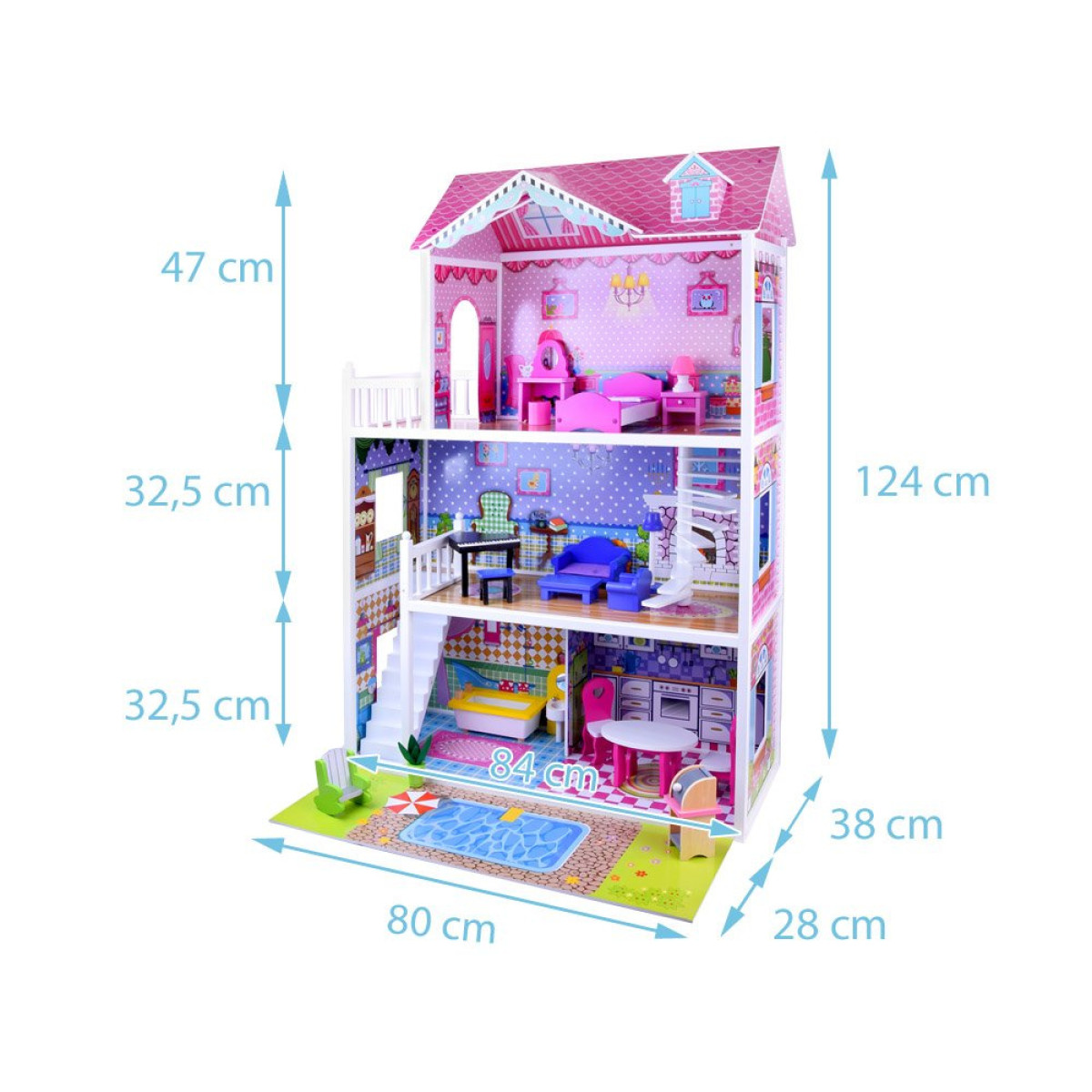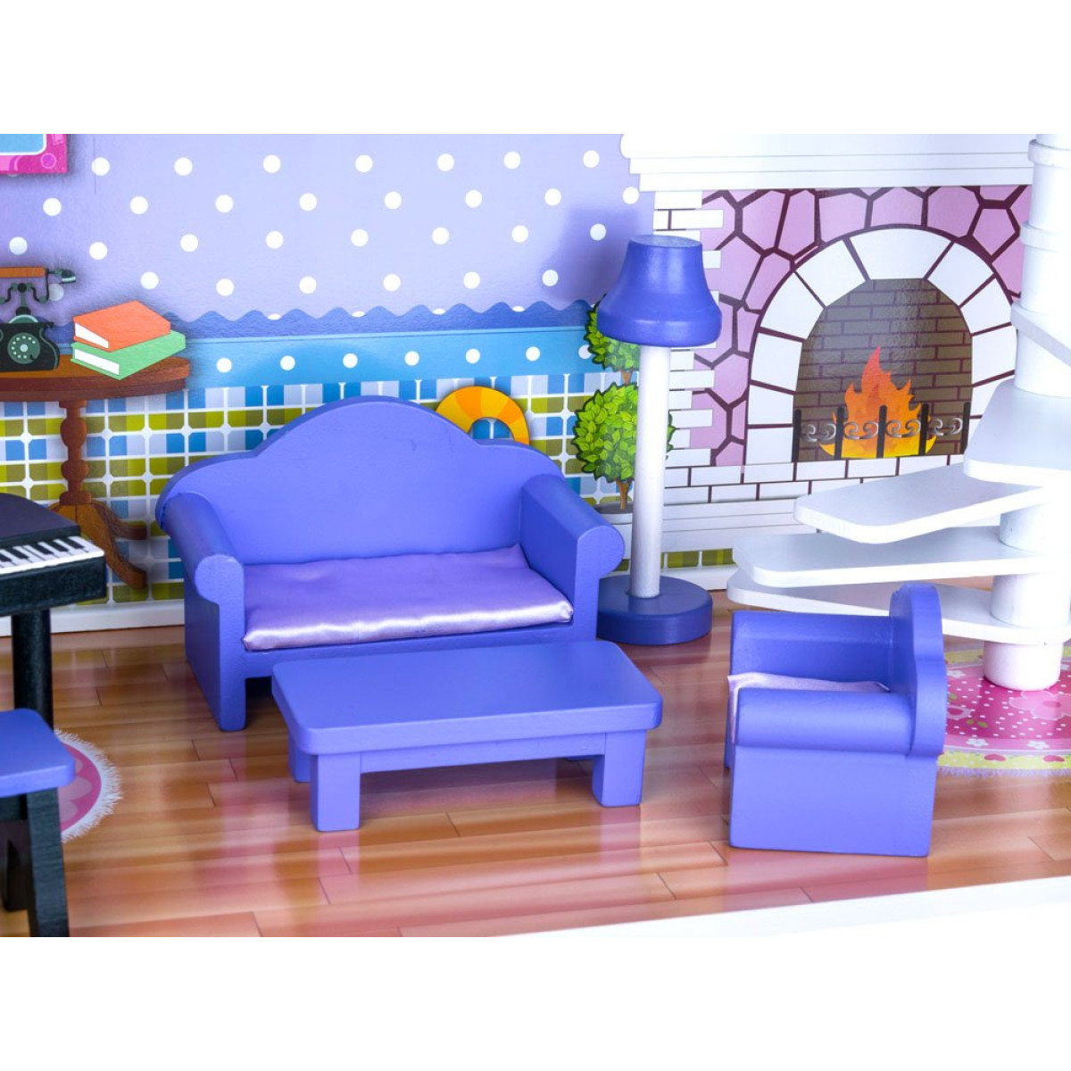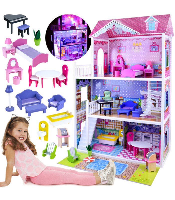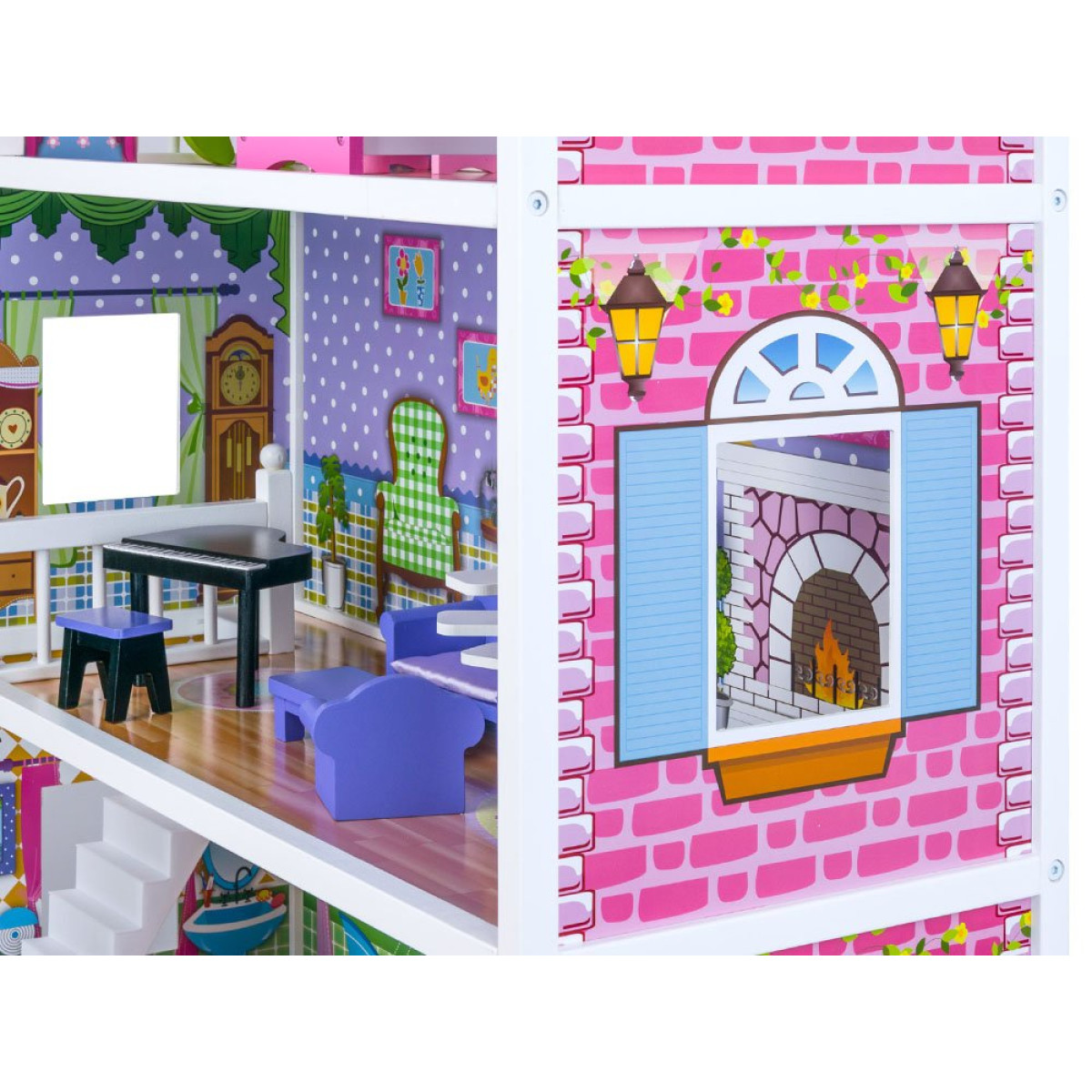 Võluv ja värviküllane villa nukkudele on iga tüdruku unistus. Iga nukk tunneb end seal suurepäraselt. Kes ei tahaks seal elada? See kaunis kolmekorruseline puidust nukumaja on täielikult sisustatud, pakkudes avaraid ruume, kus saab pidevalt ümber paigutada kauneid puidust mööbleid ja aksessuaare. Rikkalik varustus tagab pika ja toreda mängu iga lapsele. Lisavõlu annab LED valgustus, mis loob ainulaadse efekti.