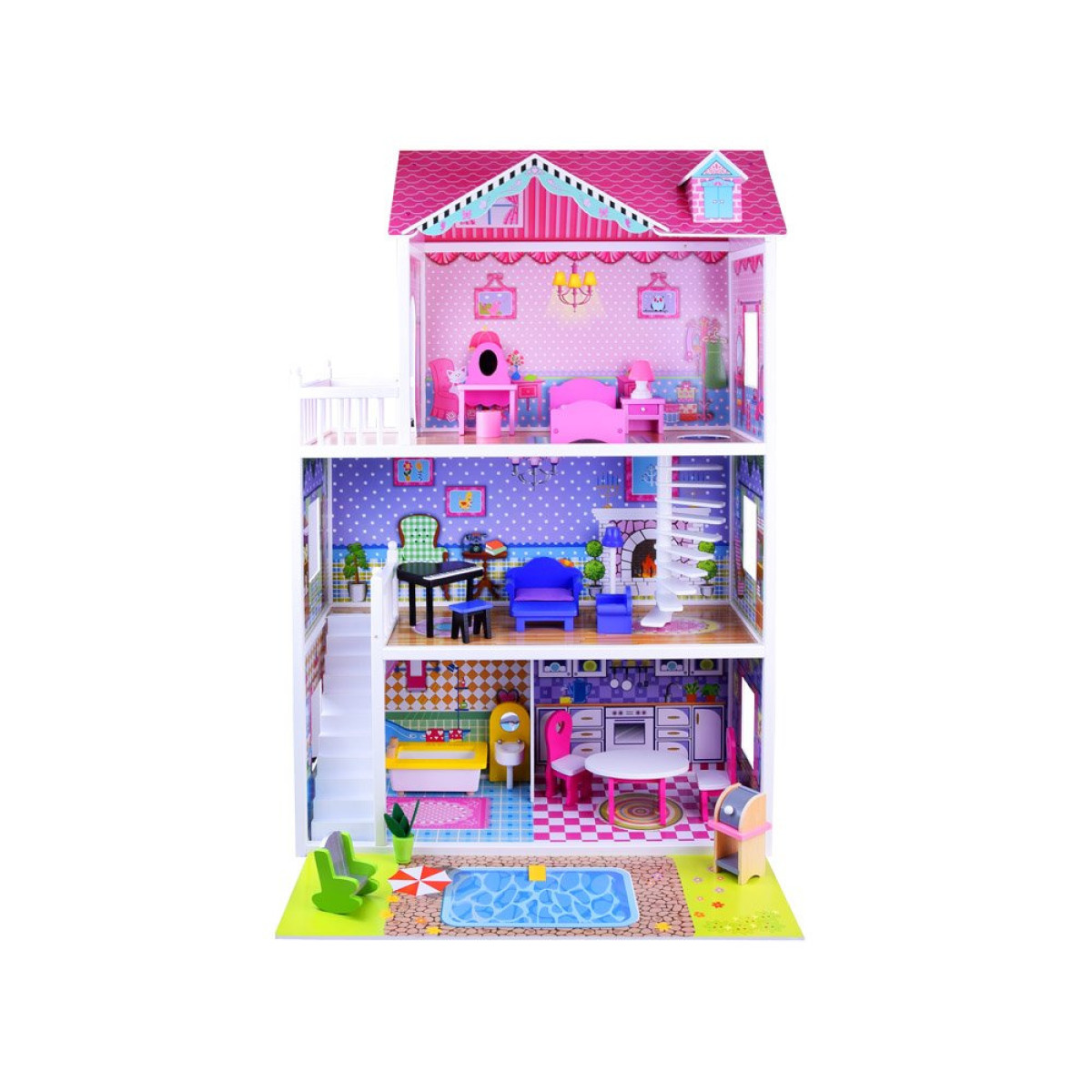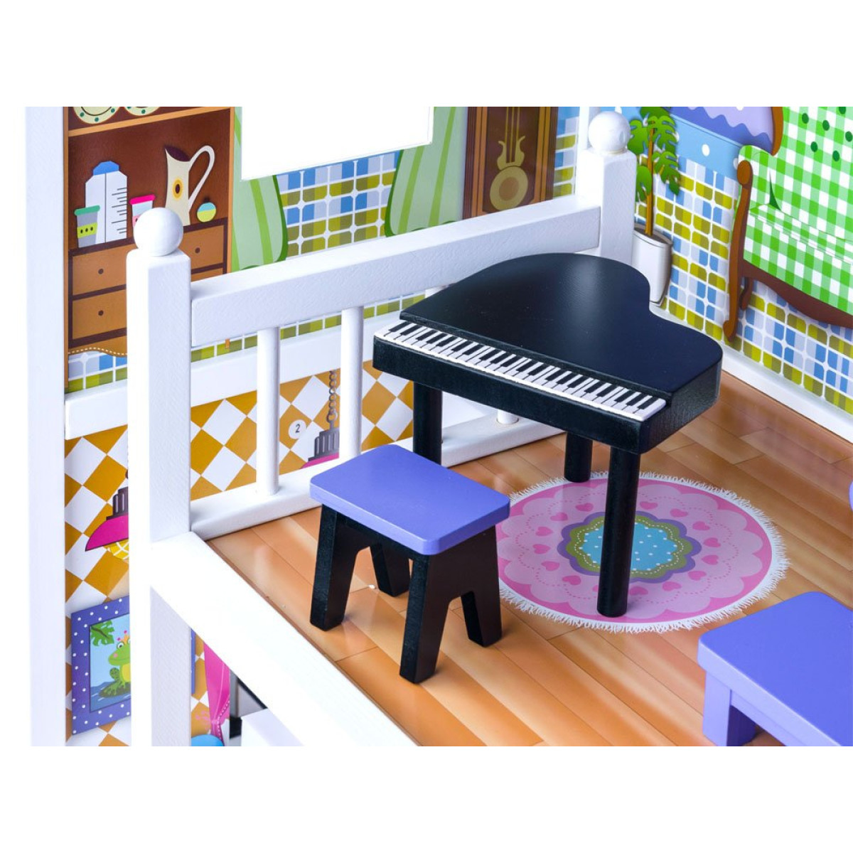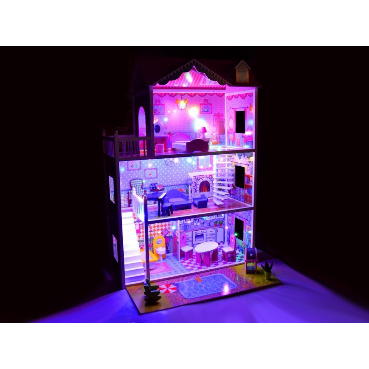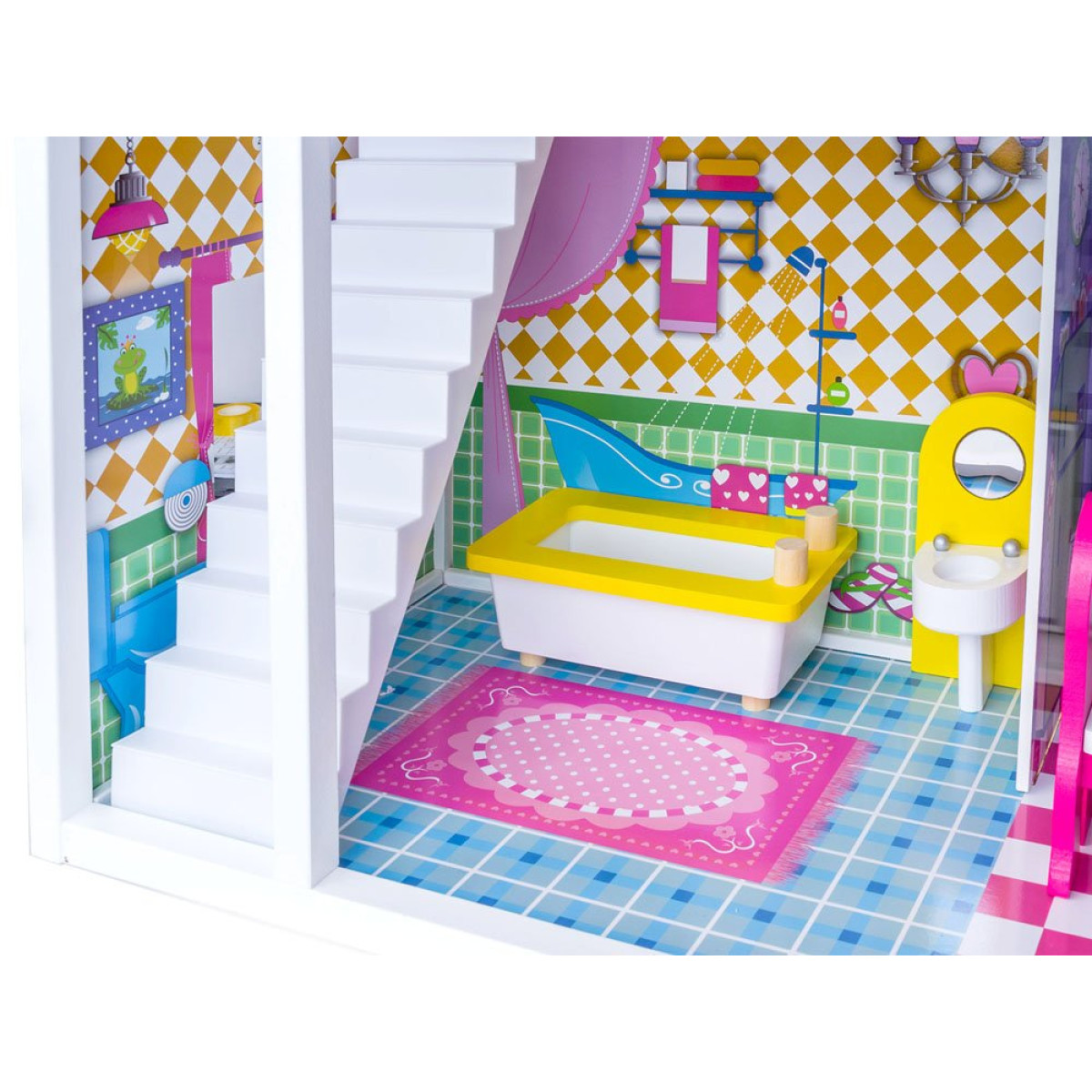 Võluv ja värviküllane villa nukkudele on iga tüdruku unistus. Iga nukk tunneb end seal suurepäraselt. Kes ei tahaks seal elada? See kaunis kolmekorruseline puidust nukumaja on täielikult sisustatud, pakkudes avaraid ruume, kus saab pidevalt ümber paigutada kauneid puidust mööbleid ja aksessuaare. Rikkalik varustus tagab pika ja toreda mängu iga lapsele. Lisavõlu annab LED valgustus, mis loob ainulaadse efekti.
