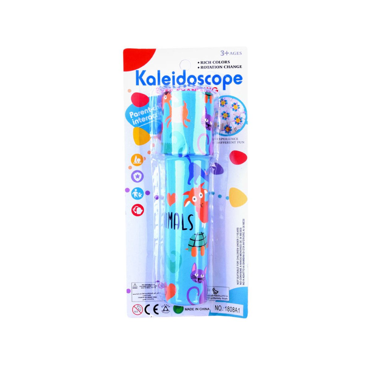 Kaleidoskoop on valmistatud paberist, kaunistatud armsa loomade graafikaga. Mõõtmed: 18cm