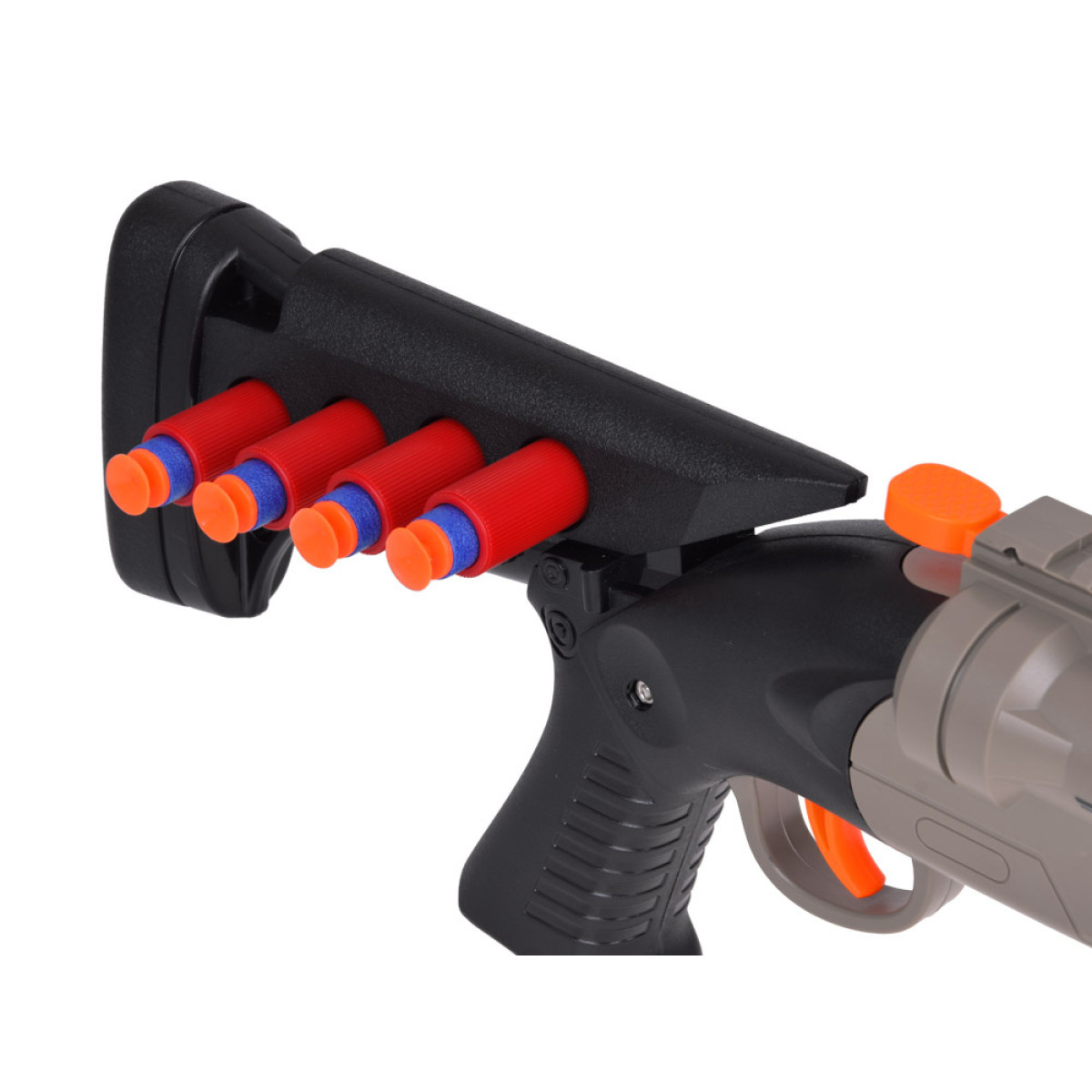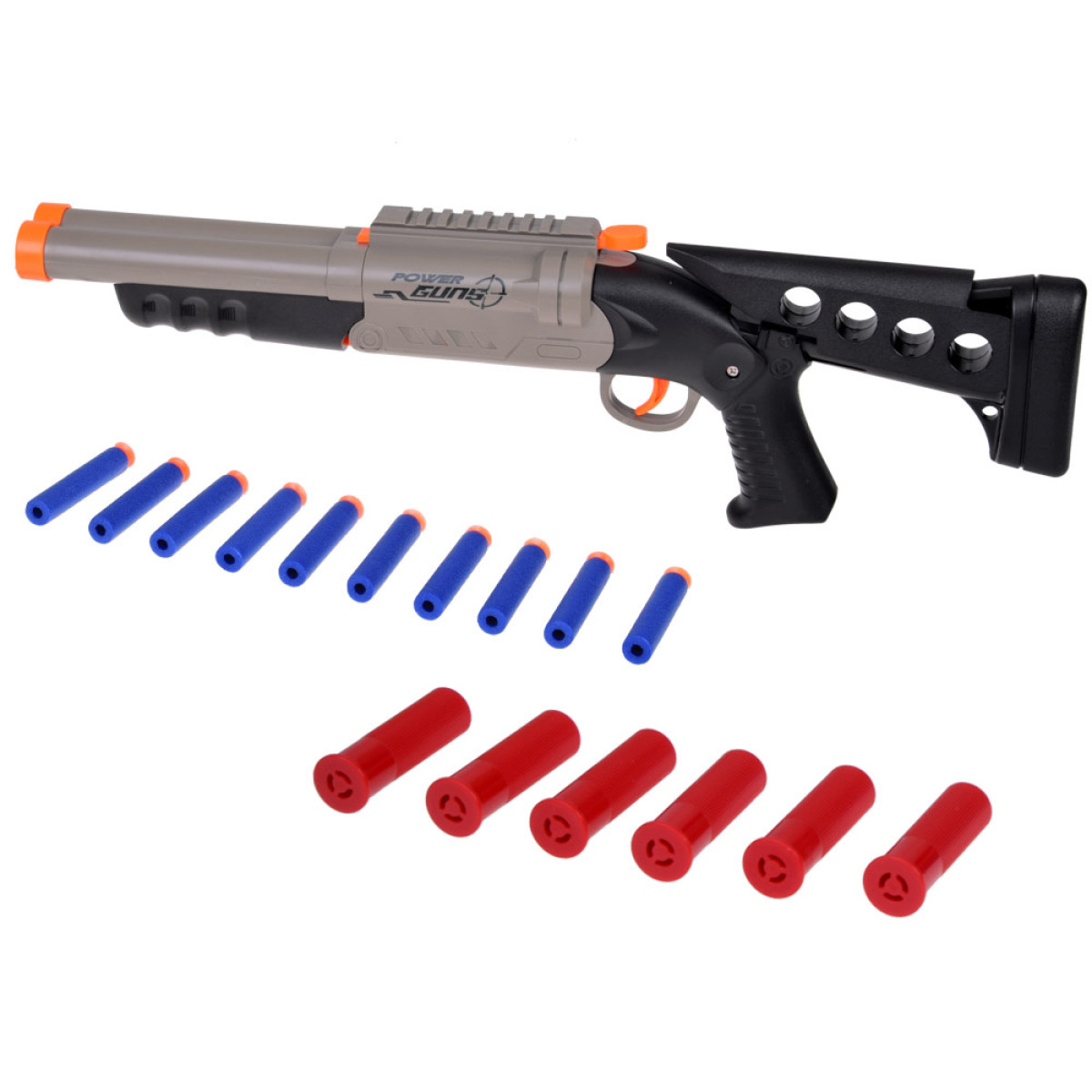 See fantastiline topeltpüss on tõeline maiuspala iga laskemängude fänni jaoks. Massiivne püss on valmistatud kvaliteetsest plastikust, pöörates tähelepanu detailidele. Hall-must värvilahendus muudab selle väga realistlikuks ja kvaliteetne töötlus üllatab kindlasti iga väikest militaarentusiasti.