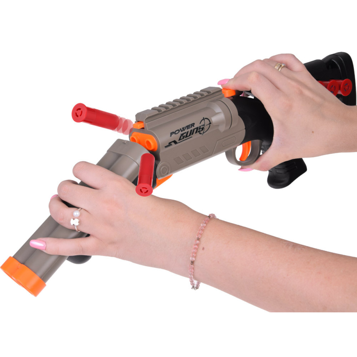 Tõstke toru, sulgedes selle, kuni kuulete klõpsatust. Valmis! Nüüd vajutage päästikut. Kui teete seda kergelt, tulistate ühe kuuli. Kui vajutate tugevamini, tulistavad mõlemad korraga! Järgmise laadimise ajal, pärast avamist, kukuvad torust tühjad kapslid välja, mis muudab mängimise väga realistlikuks!
