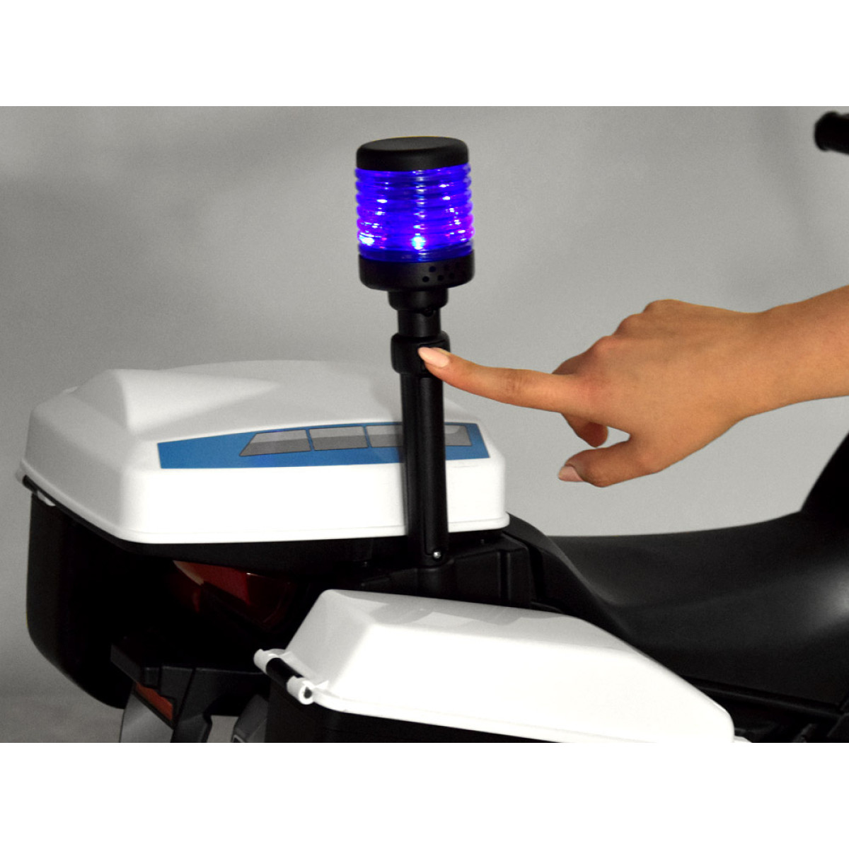 Mootorratas on sõidu ajal valgustatud, helipaneelil on lõbusate meloodiate nupud ning heli tugevuse reguleerimine. Külgrattad aitavad lapsel hõlpsasti sõitma õppida. Professionaalne politsei mootorratas on iga kahe rattalise fänni unistus!