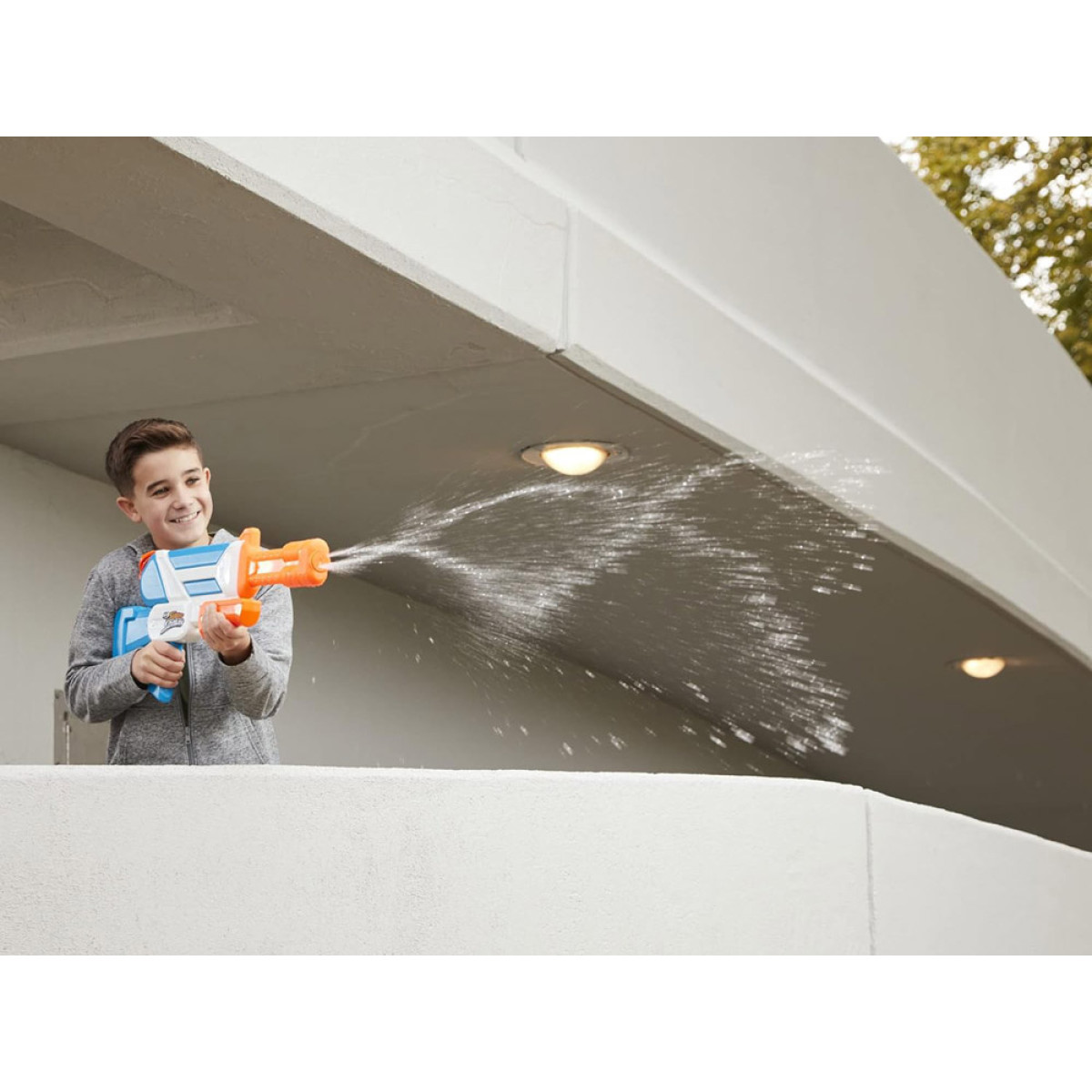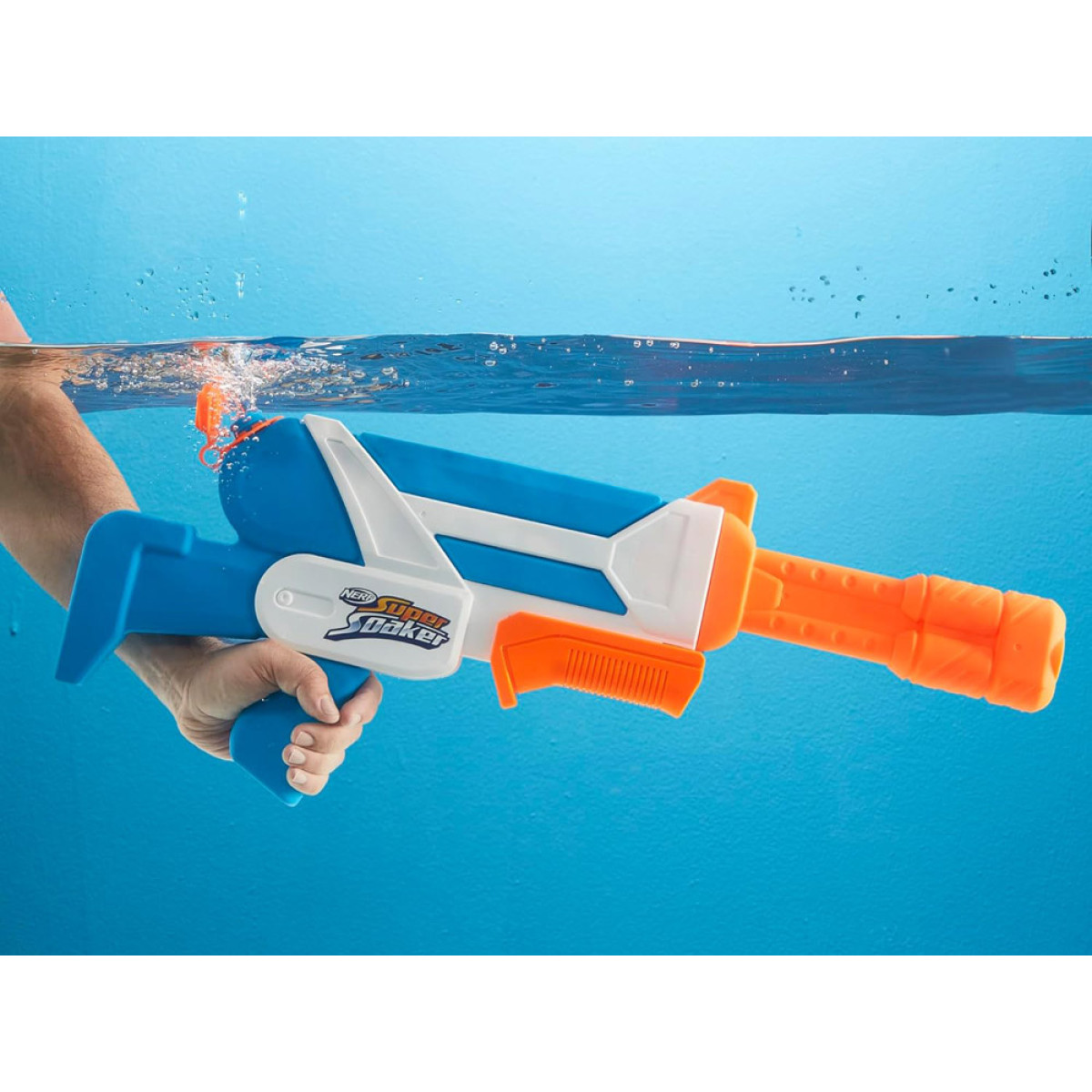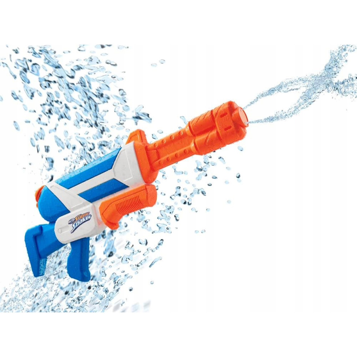 Miks see on eriline? - Muidugi suuruse ja mahutavuse tõttu! Kuid see pole veel kõik! Hoolimata oma suurusest on see väga mugav käes hoida. Tulistamise ajal saab seda toetada paremale või vasakule õlale, et ühe käe koormust vähendada. Lisaks pihustab Nerf mitu meetrit vett kahest düüsist, luues keerlevad veejoad. See on silmapaistev efekt, mida hindab iga kasutaja. Lihtsalt ava püstoli ülaosas olev kaas, vala sisse vett ja alusta tulistamist, pumbates piklikku päästikut. Selle mudeliga oled kindlasti parim mängija!