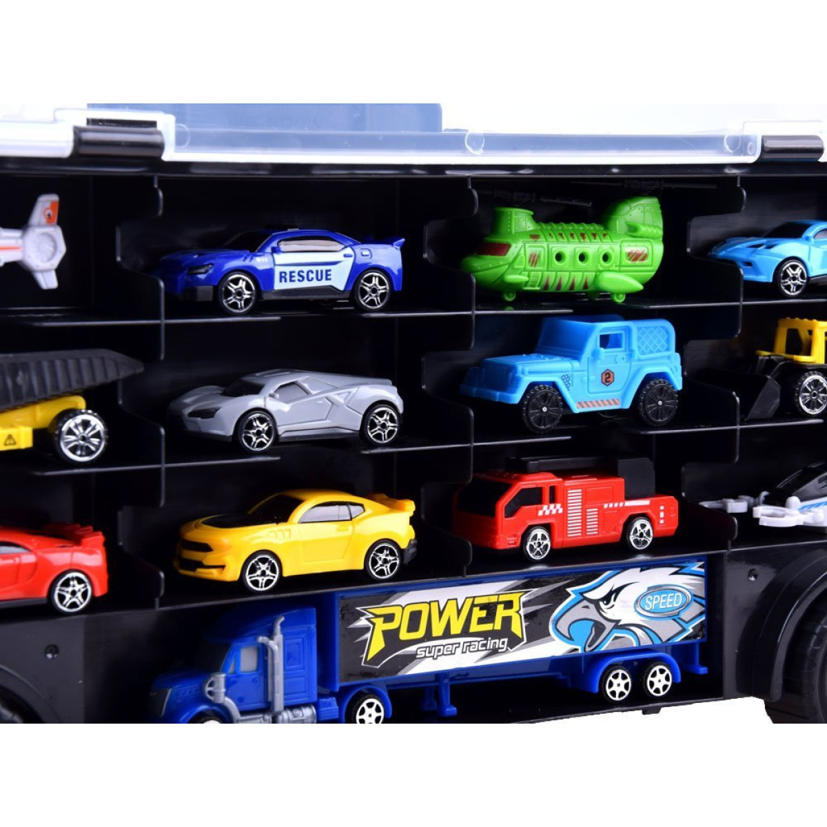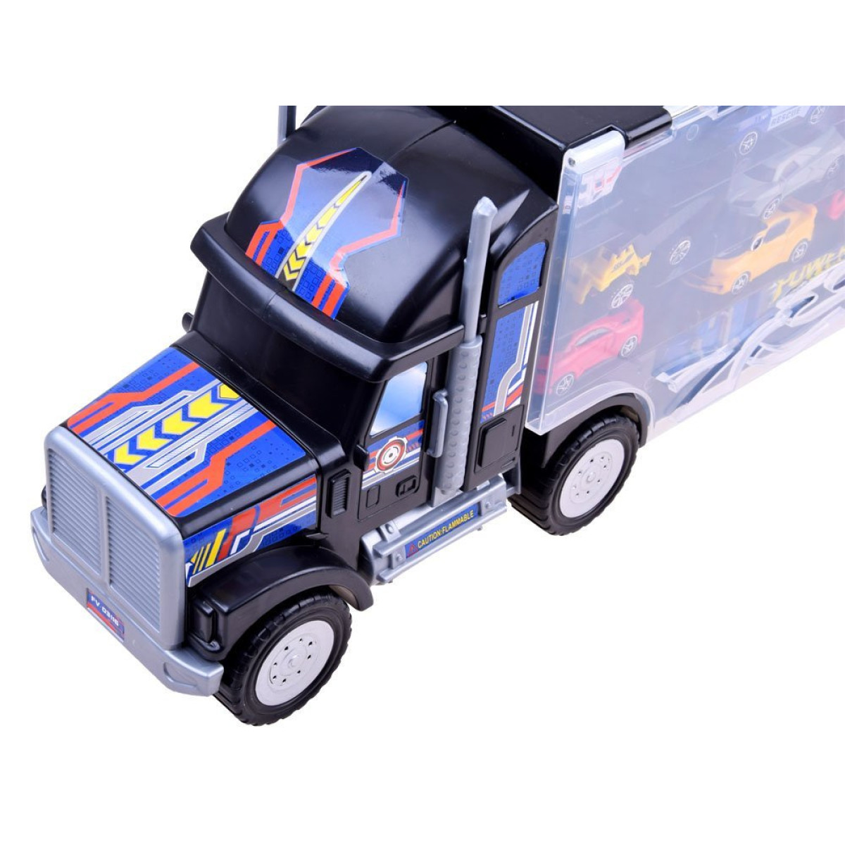 Suurepärane valik igale väikeste autode kollektsionäärile. Veok koos haagisega võimaldab korrastada kogu kollektsiooni nii, et ükski väärtuslik auto ei läheks kaduma. Ideaalne lastele, kes armastavad oma mänguasjades korda hoida.