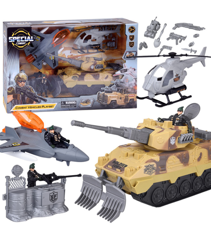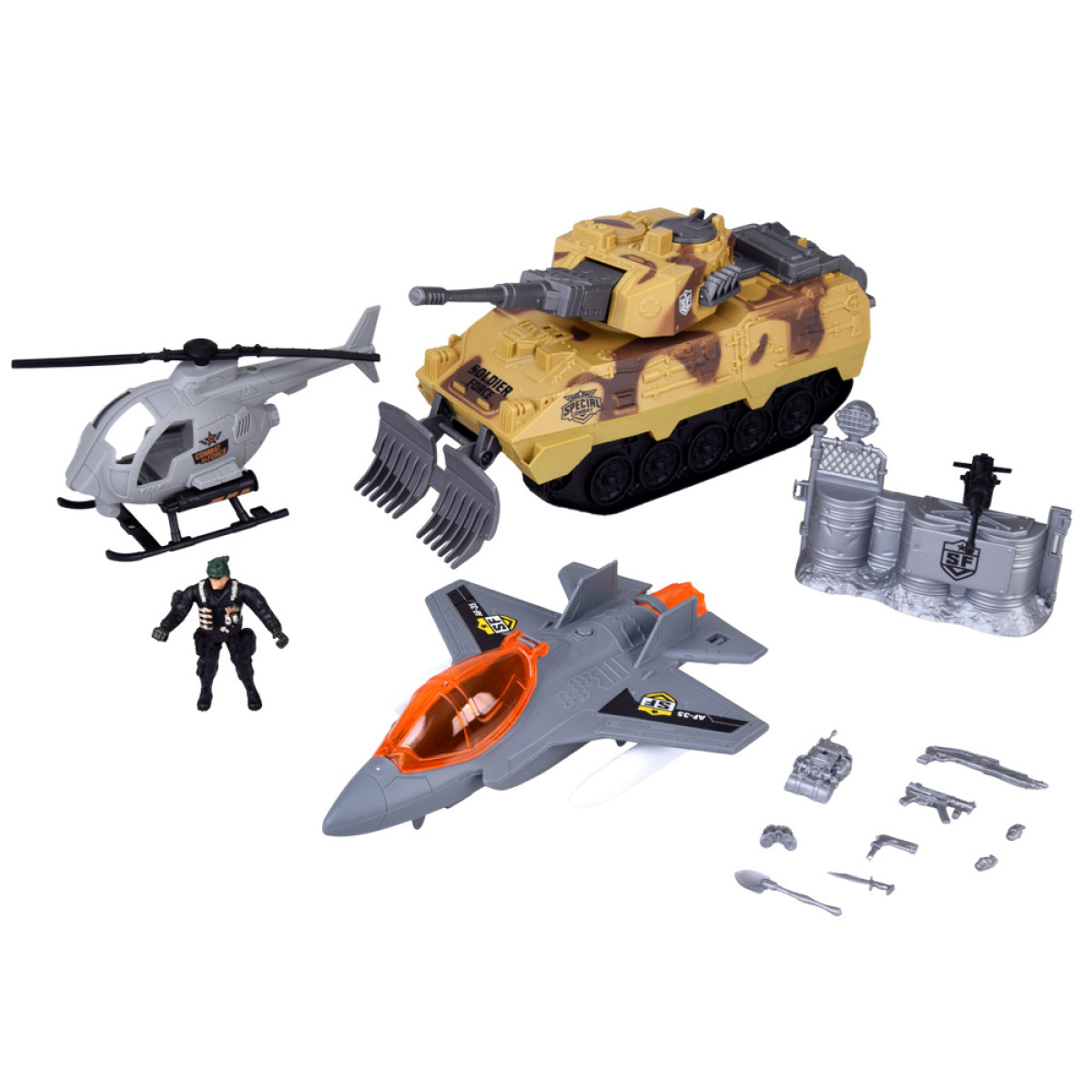 Suur militaarmängukomplekt tank hävitaja helikopter + sõdur ZA5752