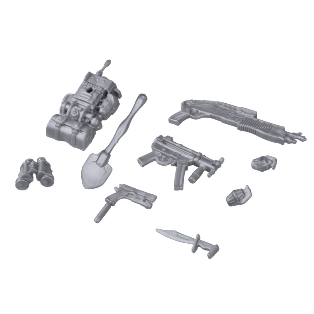 - Aksessuaarid: taktikaline seljakott raadiojaamaga, püssid, püstol, granaadid, nuga, labidas - täielik varustus mängu mitmekesistamiseks.
