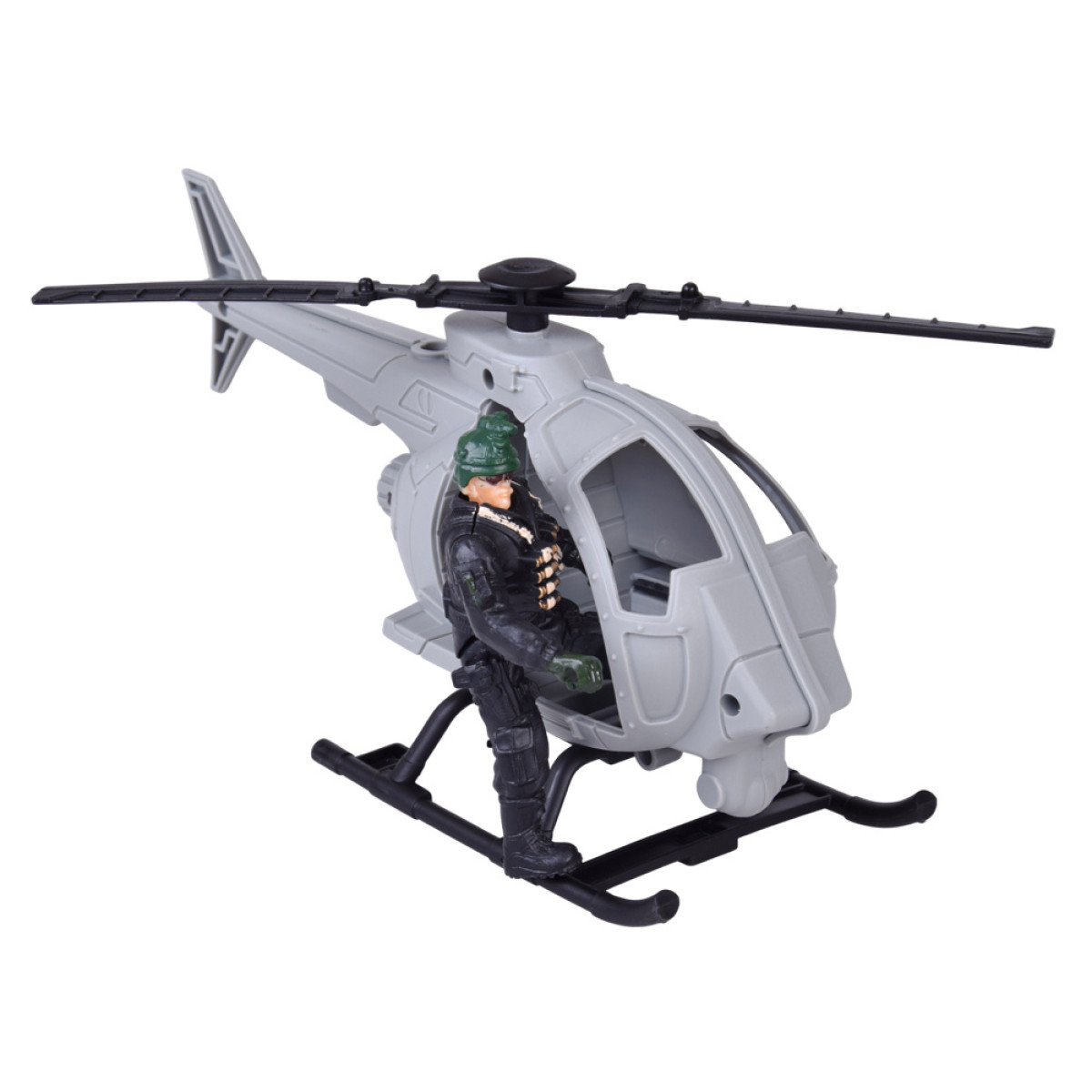- Helikopter kabiiniga, kuhu saab sõduri panna; liigutatavad rootorilabad võimaldavad mängida starti ja maandumist.