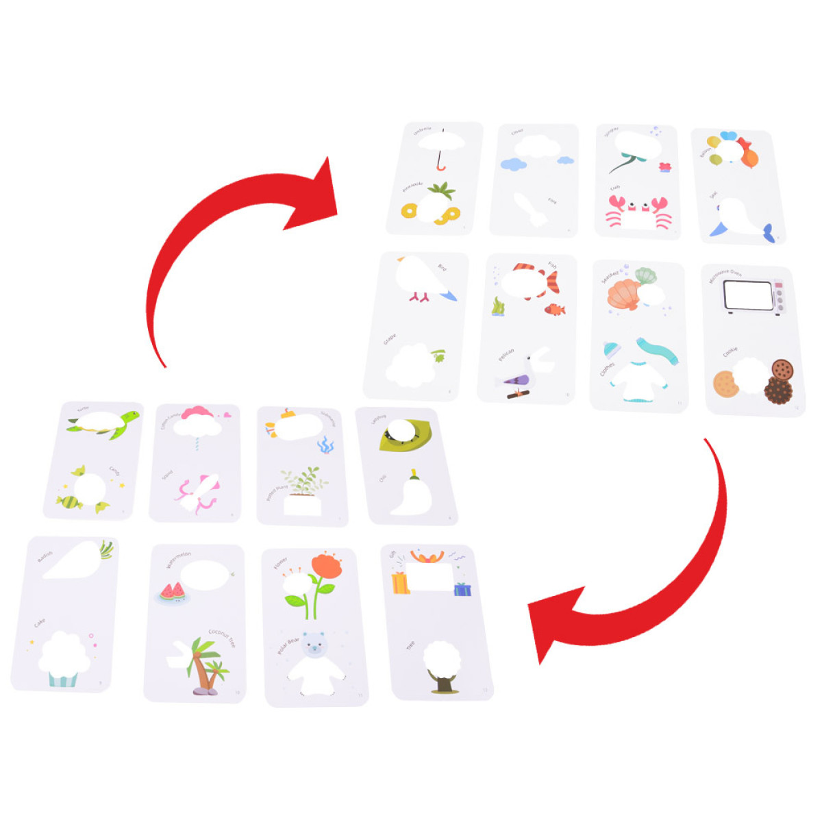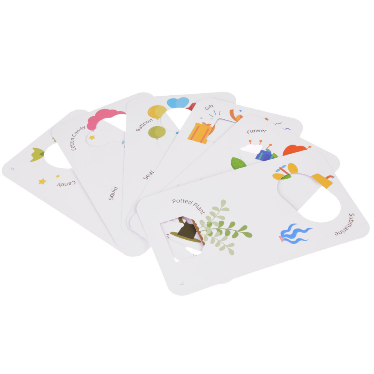 Kasutades loomingulisi või tegelaskaarti, paluge lapsel valida oma lemmikvärv ning muster ja asetada see eelmiste kaartide alla. See võimaldab neil luua oma isiklikke kombinatsioone, samuti arendab esteetikat ja loovust.