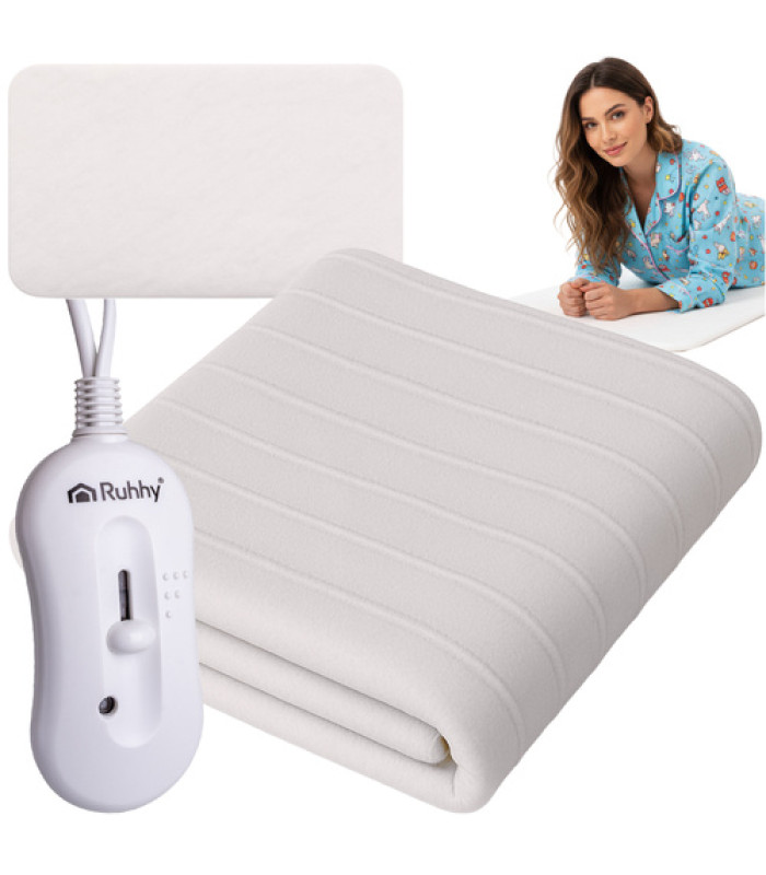 Elektrinis šildymo kilimėlis, minkštas ir šildomas, 3 šildymo režimai + nuotolinio valdymo pultas 150 x 80 cm, baltas RUHHY - šilumos technologija, kuri apgaubia ir atpalaiduoja