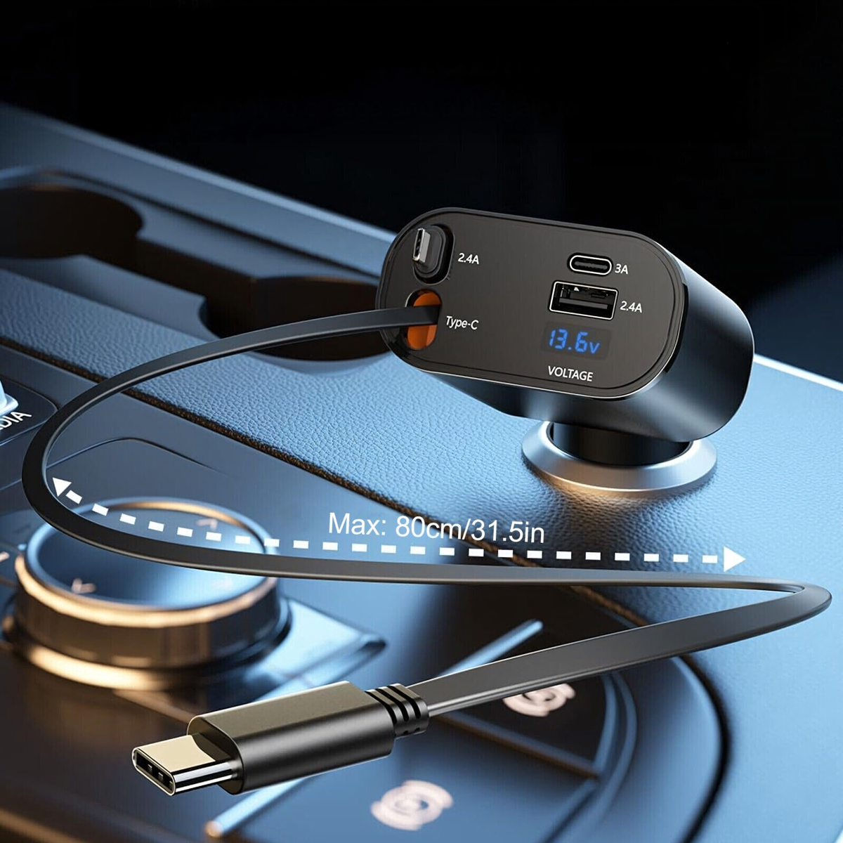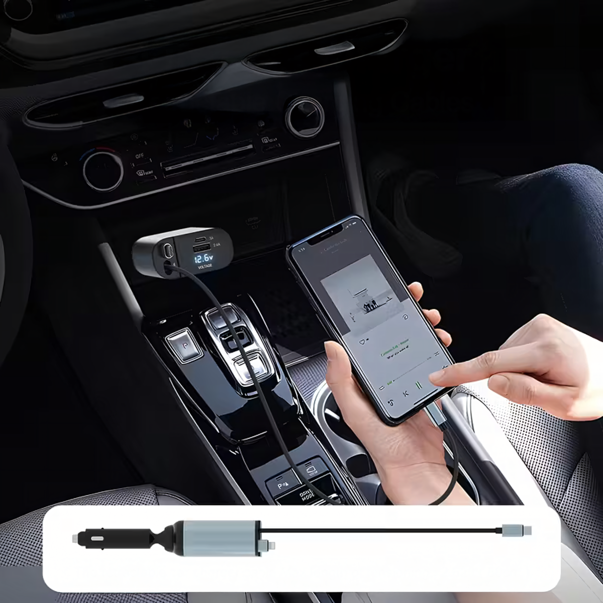 Auto Laadija 4in1 USB C Kokkupandav Kinnitus 120W Kiirlaadimine 80 cm