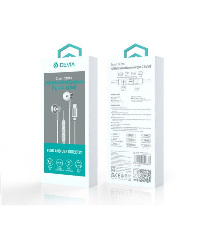 "Devia" laidinės ausinės Smart M2 Digital Metal USB-C sidabrinės