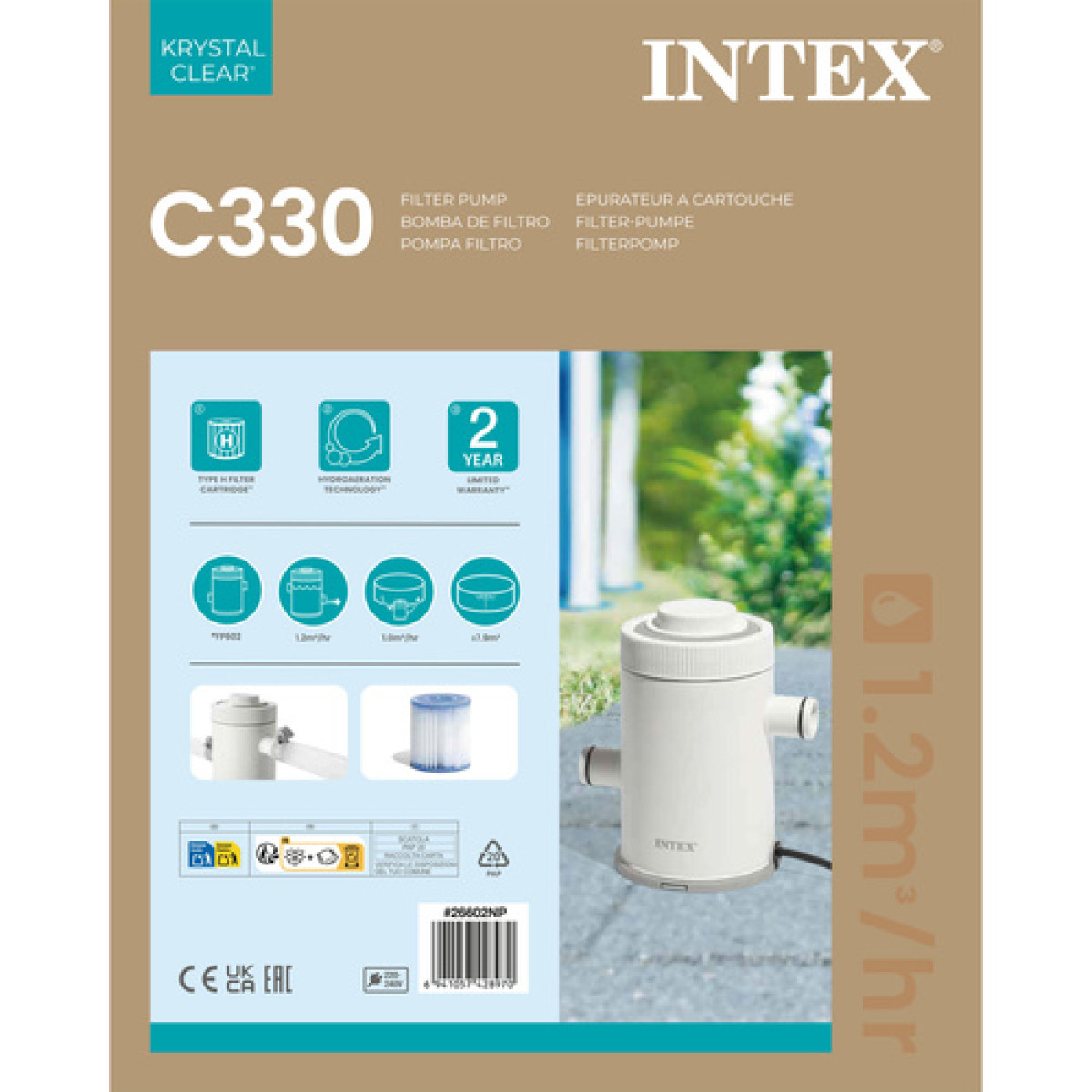 intex 26602np filtratsioonipump c330 1250 l/h aitab hoida basseinivee puhtama, selgema ja meeldivamana ujumiseks. Ilma pideva veeringluseta kogunevad basseini kiiresti väikesed mustuseosakesed ning vesi muutub häguseks. intex krystal clear c330 filtratsioonipump on lihtne ja tõhus lahendus igapäevaseks veepuhastuseks.